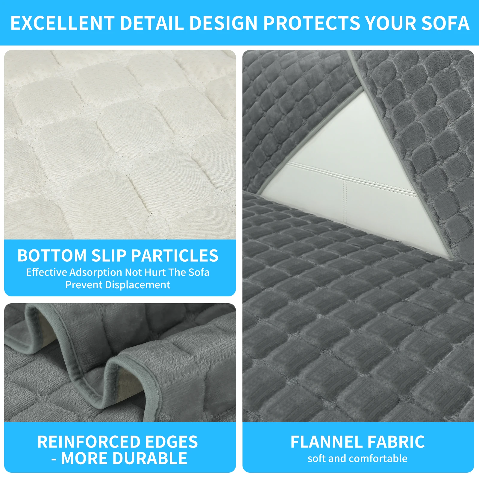 - Features anti-slip silicone particles at the bottom, ensuring a stable fit on both fabric and leather sofas while preventing shifting or slipping during use.