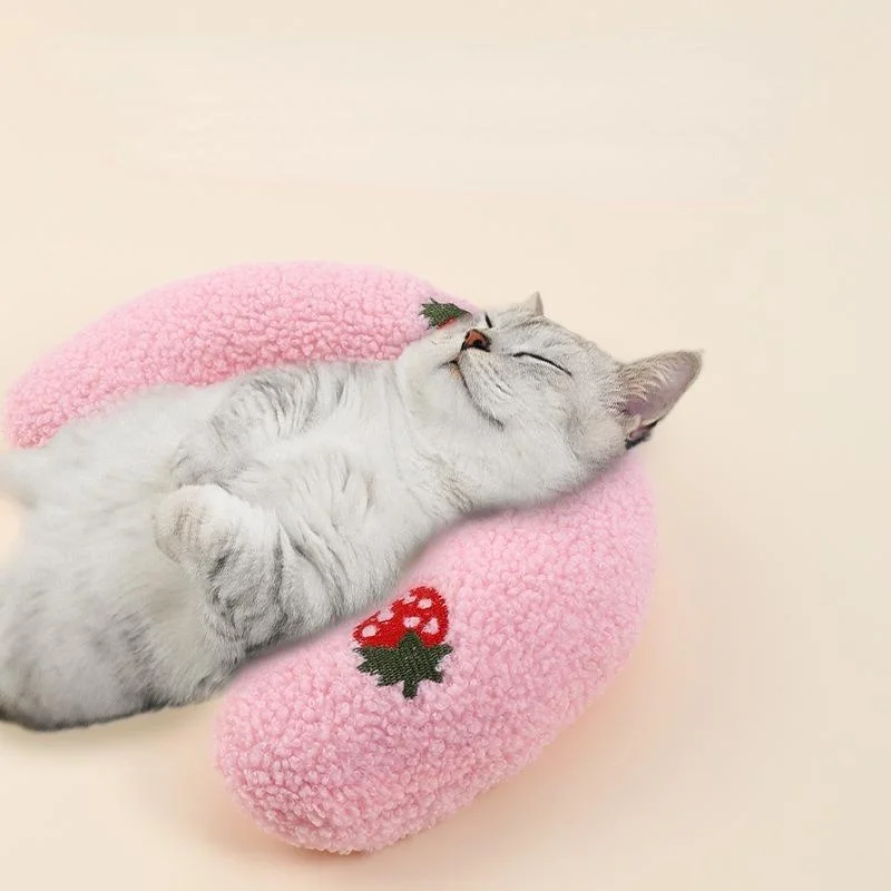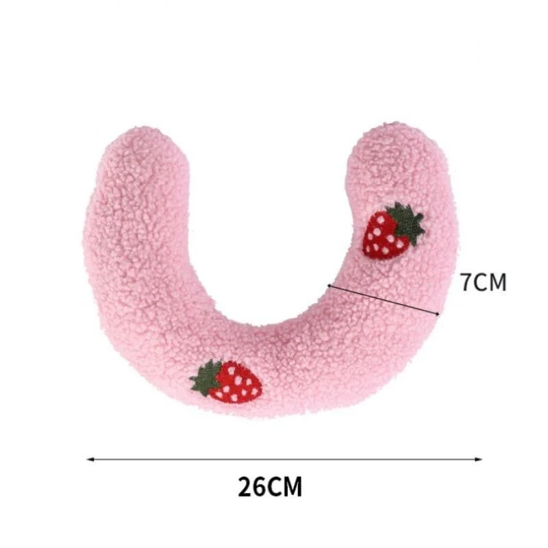 Imagine your beloved pet resting peacefully on this adorable, plush pet pillow, designed to provide maximum comfort and cuddle. Crafted from soft, gentle cotton filled with PP cotton, it offers a cozy spot for pets to relax after playtime. Measuring 26 x 7 cm, this U-shaped pillow is perfect for cats and small dogs, supporting their head and body comfortably. Its charming design features tiny embroidered or appliqué elements such as strawberries, hearts, cherries, and a smiling face, adding a whimsical, cute aesthetic. Available in bright blue, soft pink, warm yellow, and light gray, it blends style with practicality. You’ll love seeing your pet content and relaxed, creating a cozy bond every time they curl up on it.