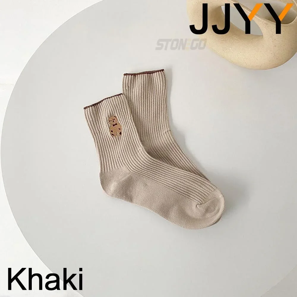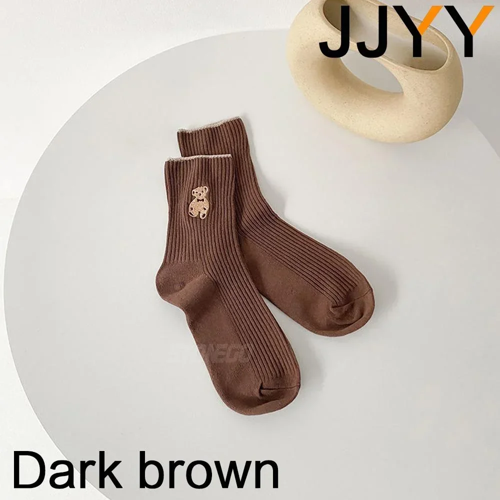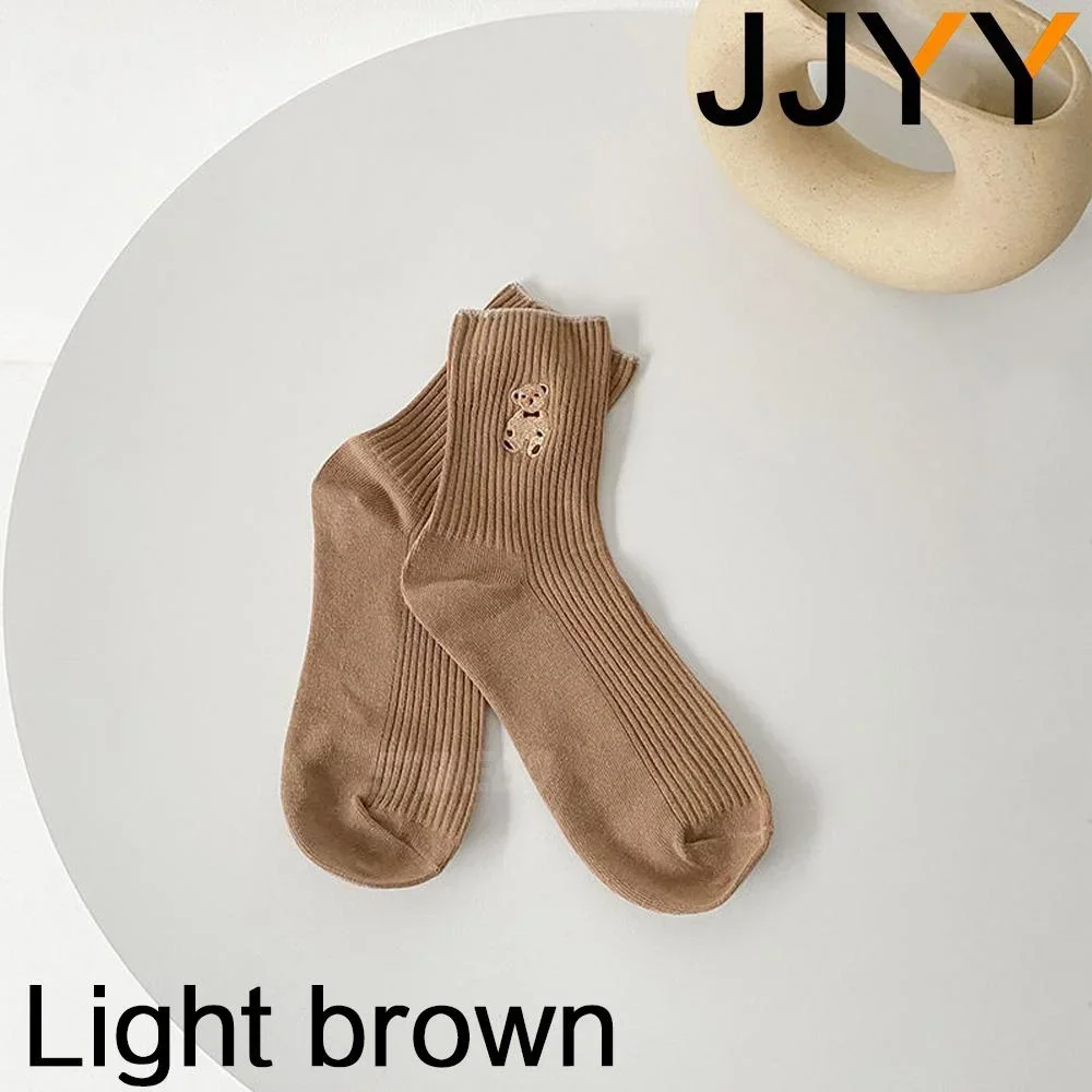 Experience the perfect blend of comfort and style with this pair of casual bear embroidered tube socks designed for women. Crafted from breathable, absorbent cotton, combined with spandex and polyester, these socks promise a soft, flexible fit suitable for all seasons. Their mid-tube length reaches halfway up the calf, offering a relaxed yet snug feel ideal for autumn and winter. The playful teddy bear embroidery near the cuff adds a touch of cuteness, enhancing your casual wardrobe. Available in elegant colors like white, beige, black, khaki, light brown, and dark brown, these socks elevate your daily look with charm and comfort. Whether lounging at home or running errands, these socks will quickly become your favorite cozy accessory.