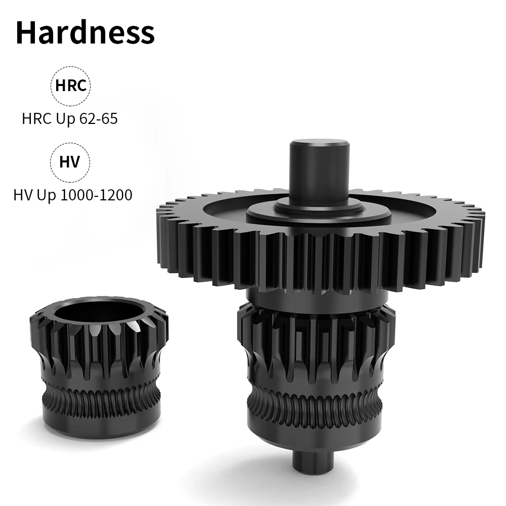 - Gear hardness levels of HRC 62-65 and HV 1000-1200 surface hardness guarantee exceptional strength, wear resistance, and corrosion protection.