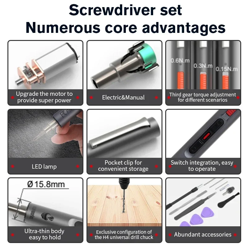 Imagine effortlessly tackling your next home improvement or DIY project with this efficient, stylish tool. Its lightweight design, organized accessories, and rechargeable power give you the confidence to complete tasks quickly and accurately. Elevate your toolkit with this reliable, modern electric screwdriver—your perfect partner for precision work. Don't wait—enhance your repair capabilities today and enjoy the satisfaction of completing projects with ease and professional quality.