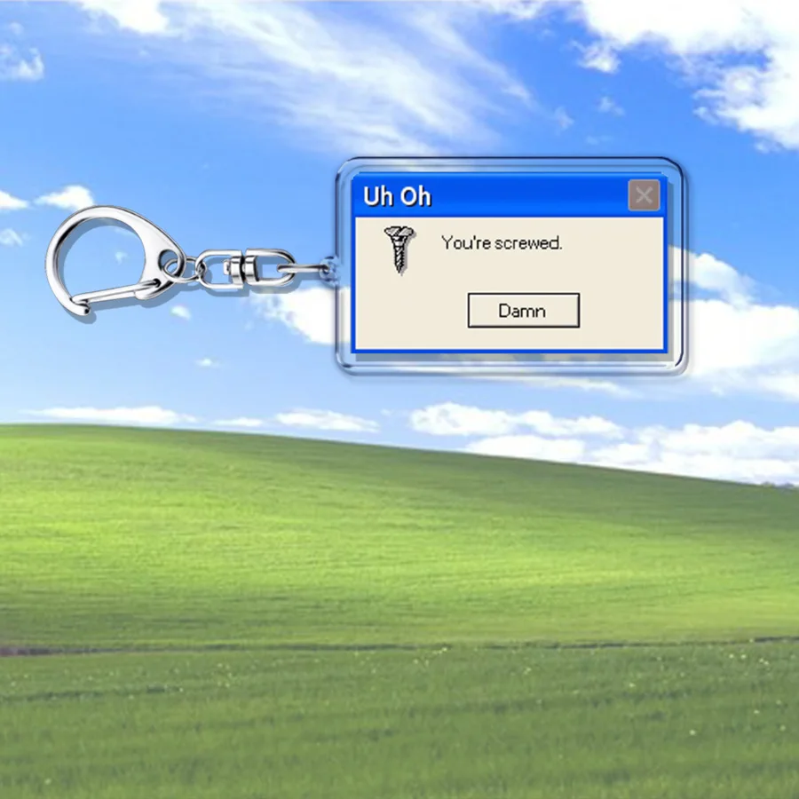 Enhance your daily accessories with the Creative XP Window Keychain! Imagine the smiles you could bring while showcasing this humorous piece. It's not just a keychain; it’s a statement of your unique style and love for retro vibes. Get yours now and carry a piece of nostalgia wherever you go!
