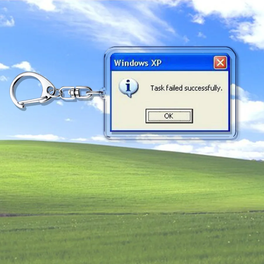 This Creative XP Window Keychain is perfect for anyone who cherishes nostalgic computer humor. Shaped like a Windows XP interface with vibrant, playful designs and clear acrylic material, this keychain is not just functional; it's a conversation piece! Highlighting quirky error messages, including “Task failed successfully,” these keychains are made to bring a smile to your face. Finished with precision laser cutting and UV printing, each keychain features a shiny silver lobster clasp for secure attachment. Use it to spice up your keys, bags, or gifts—it's versatile and great for any occasion!