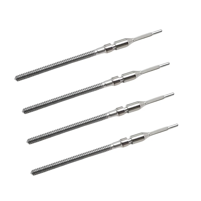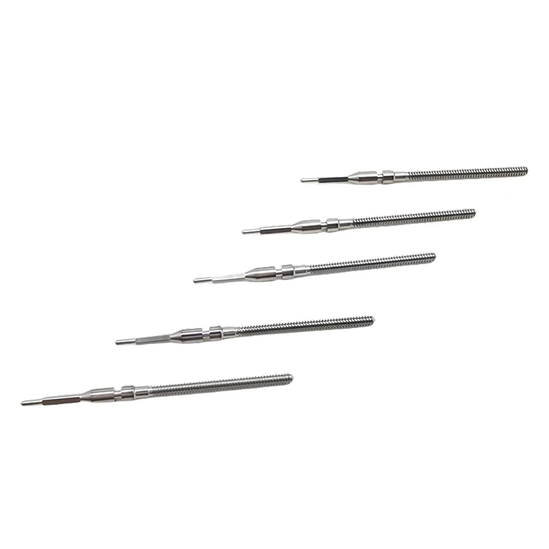 - Elongated, cylindrical design with variable lengths, threaded and smooth sections, and tapered tips for precise fitting into watch cases, ensuring smooth winding and setting functions.