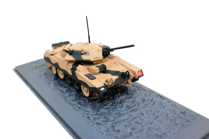 Immerse yourself in the historical charm of the Crusader II tank model, meticulously designed at a 1/72 scale. This stunning representation of the British tank used in 1942 captures intricate details with its diecast construction, made from high-quality alloy, plastic, and rubber materials. Its striking tan color, reminiscent of desert camouflage, combined with black accents brings authenticity to any collector’s display. The overall dimensions of the model are 7.5 cm in length, 3.8 cm in width, and 4 cm in height, while the gun extends to an impressive 10.5 cm. Each aspect, from the detailed wheels to the identification marking “T45127,” speaks volumes about the craftsmanship and dedication put into this piece.