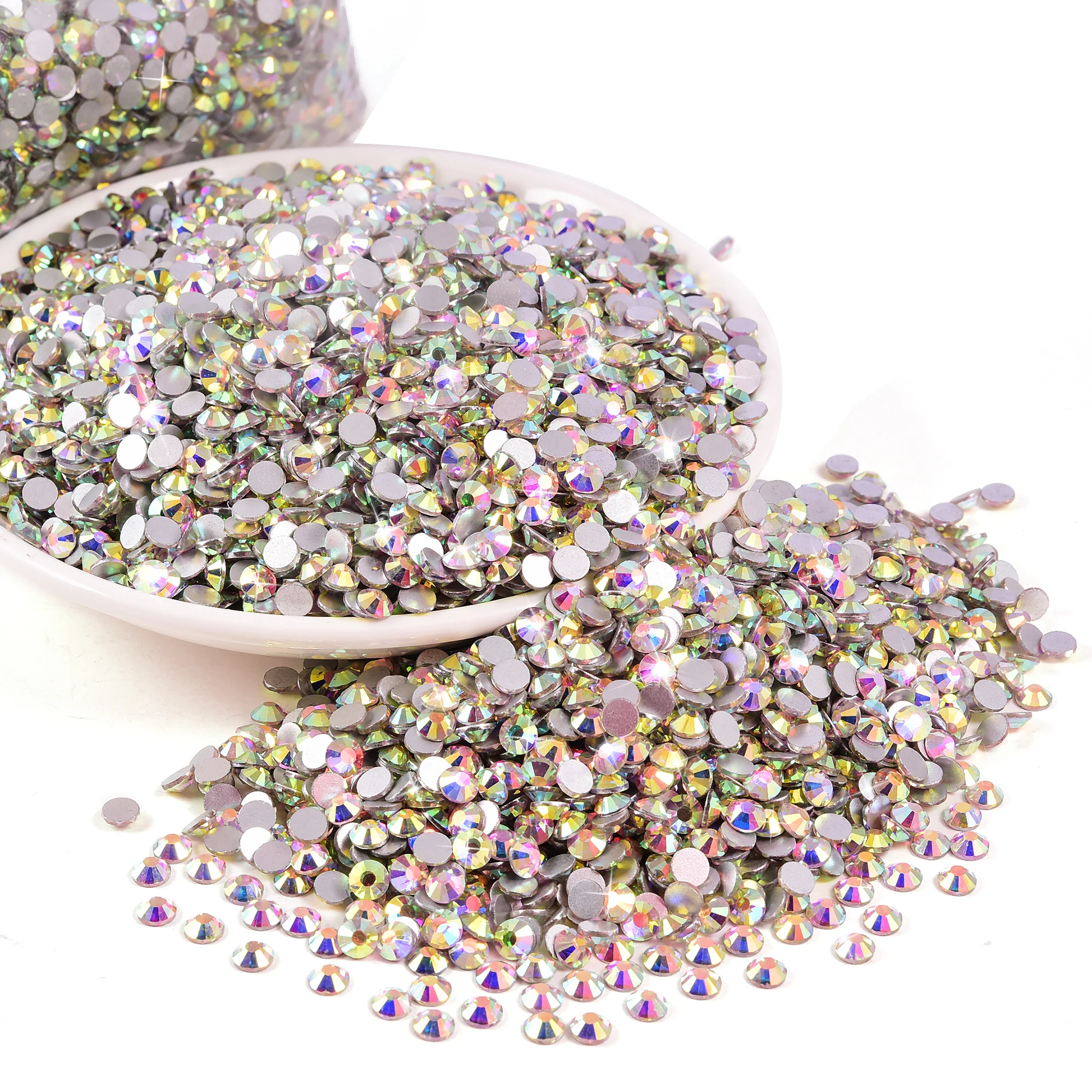 Imagine transforming your favorite accessories or nail designs with this dazzling array of Crystal AB rhinestones. Featuring a vibrant, iridescent finish, these round, flatback gems shimmer with multicolored reflections, creating a captivating rainbow of shades like yellow, green, purple, pink, and blue as they catch the light. Their 12-facet cut maximizes brilliance, giving every project an exceptional sparkle. The durable glass construction and silver backing ensure a luxurious look, whether applied to nails, shoes, bags, or clothing. With sizes ranging from SS3 to SS50, you have versatile options to suit any style or detail. Easy to use with glue, these rhinestones are perfect for adding a high-end touch to your DIY creations, making your designs truly standout and look professionally crafted.