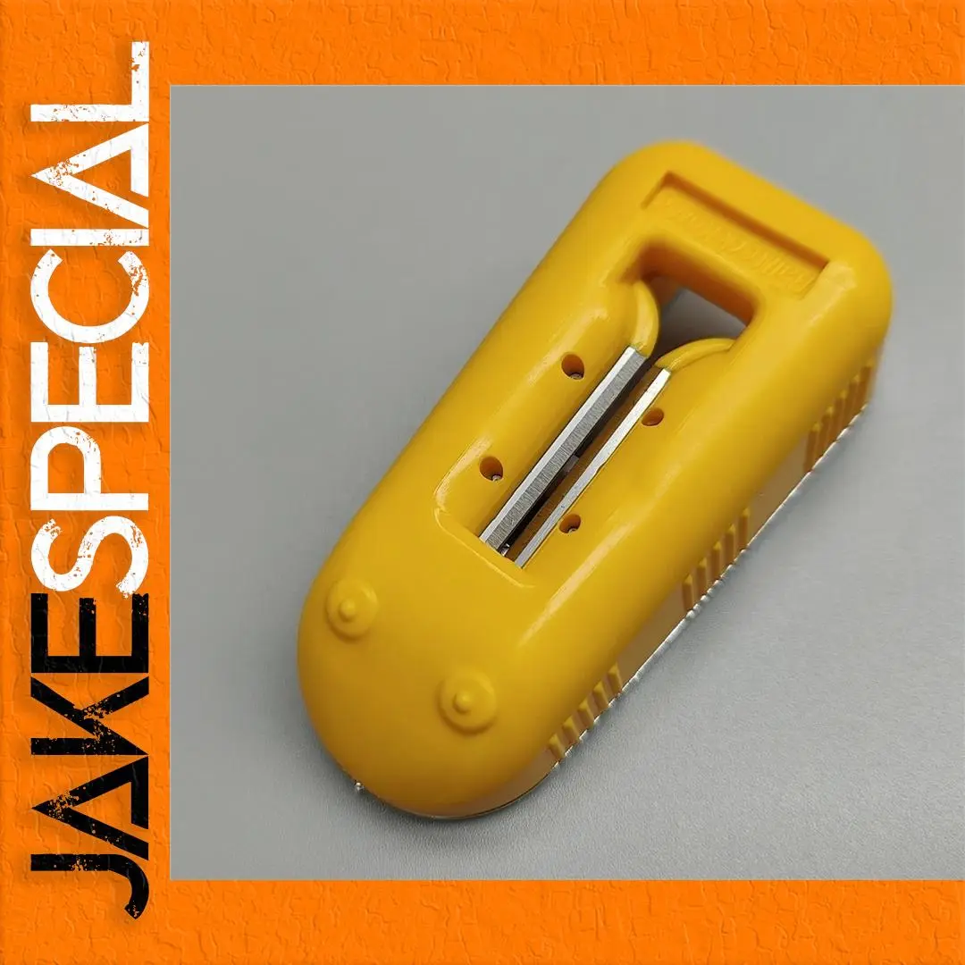 - Two metal blades for both edge and rounded cutting capabilities.