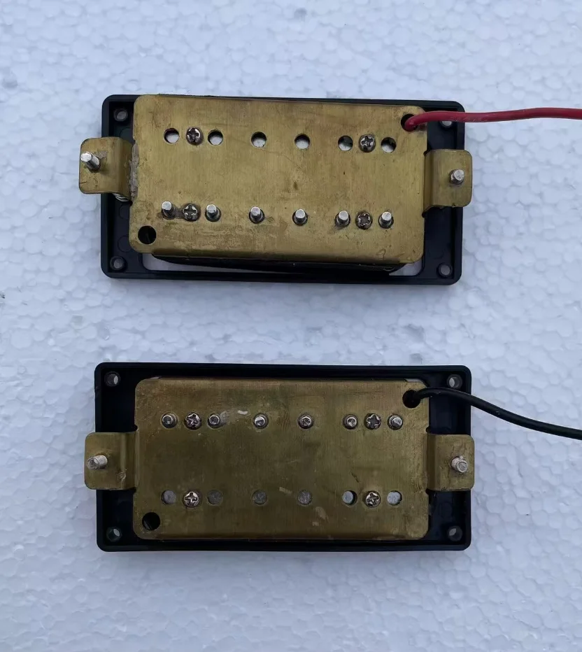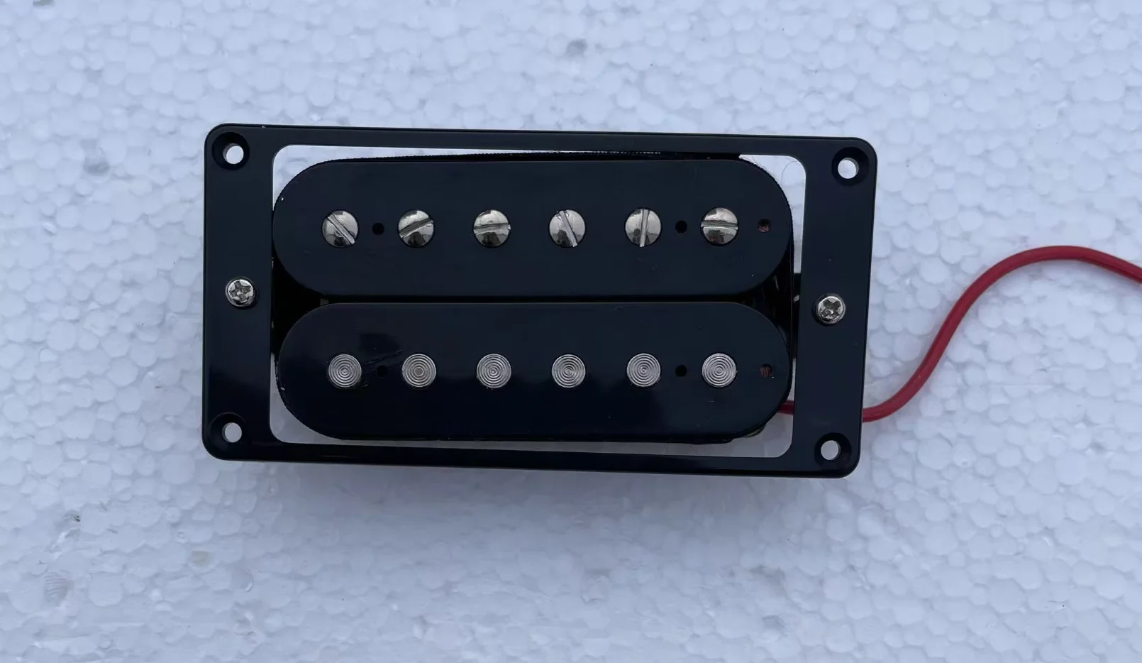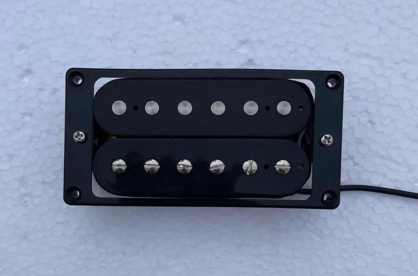 Enhance your electric guitar with this set of DIY professional custom 6-string pickups, designed in a sleek, modern style with a matte black finish. Each pickup features two rows of six evenly spaced, metallic, round pole pieces—recessed on the top row and protruding on the bottom—creating a refined and minimalistic look. The frames are smooth, slightly curved, and easy to mount with four screw holes cornered for secure attachment. Weighing only 285 grams, these high-quality pickups are crafted in Korea, ensuring durability and performance. CE certification guarantees safety and reliability, making them ideal for customizing or repairing your electric guitar for professional sound and style.