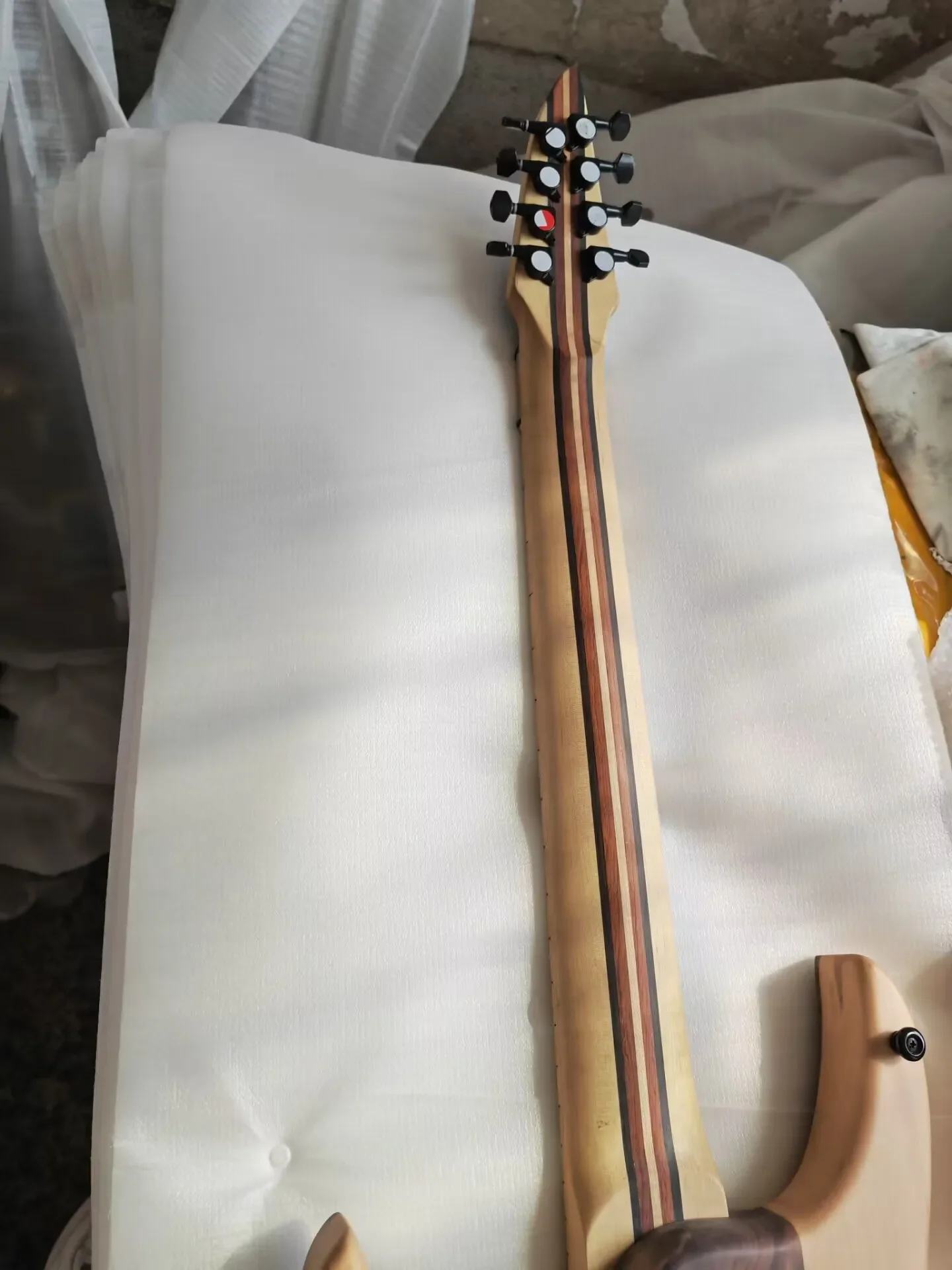 - 8-string configuration with fanned frets, providing enhanced tone range and ergonomic string spacing for technical versatility.