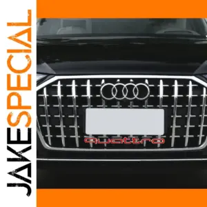 Upgrade your vehicle’s front with this custom emblem, measuring 41.8 cm long and 3.1 cm wide, crafted from durable ABS plastic for weather resistance. Featuring a sleek, modern 3D design, it displays a raised “quattro” inscription in vibrant red lowercase letters at the bottom, enhancing your car’s sporty and sophisticated look. Compatible with a wide range of models including A3, A4, A5, A6, A7, A8, Q3, Q5, Q7, Tt, as well as S and RS series like S3, S4, S5, RS3, RS4, and RS6, this emblem offers easy installation and a secure fit. Available in black and red, it’s the perfect upgrade for a bold, refined presence.