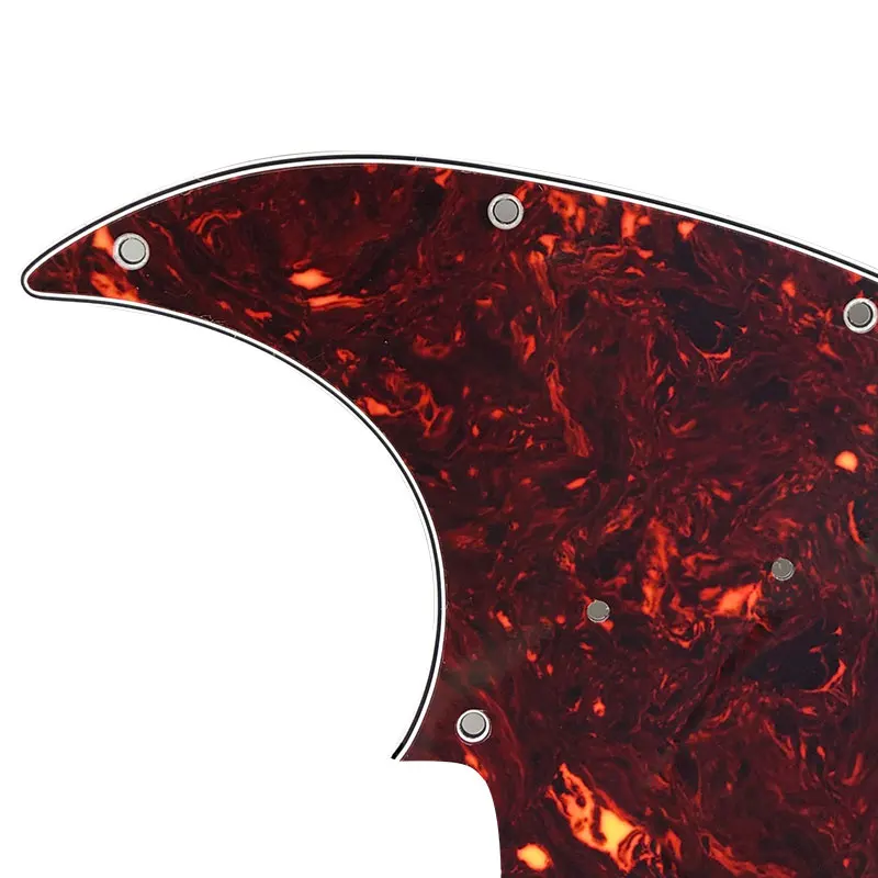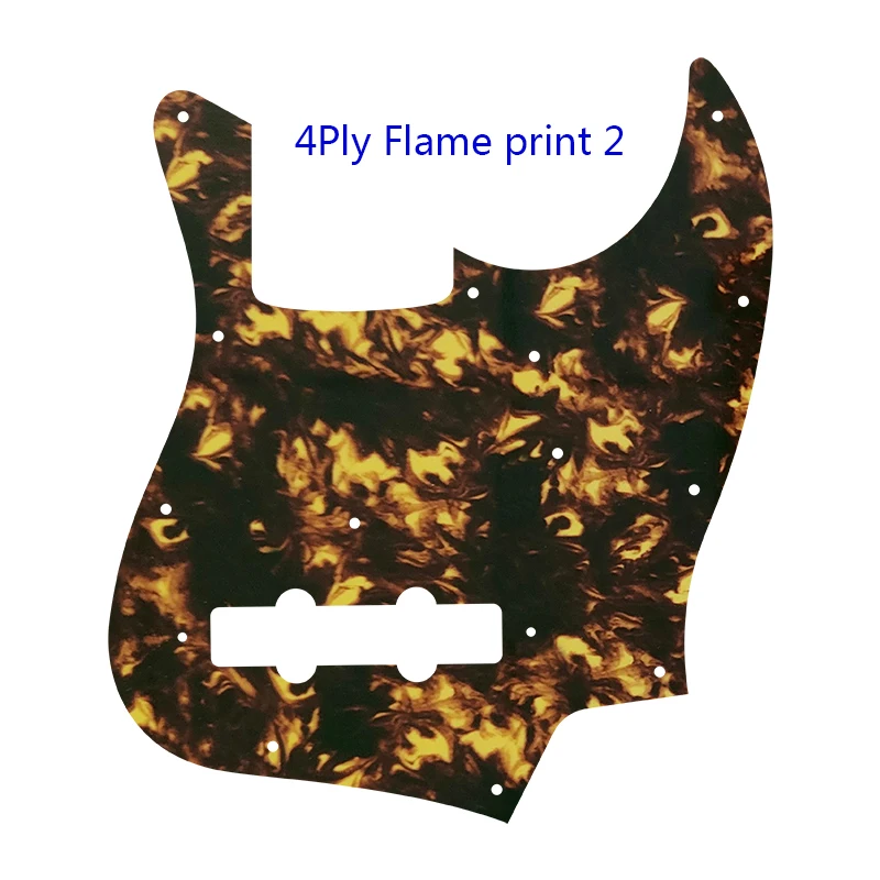 Transform your MIJ Japan Jazz Bass with this high-quality custom pickguard, specifically designed for 4-string models. Featuring 11 mounting screw holes, it ensures perfect compatibility with most American and Mexican J bass styles. Made from durable high-grade plastic or composite materials, it showcases a variety of eye-catching designs ranging from vibrant flame and leopard prints to classic tortoise shell and solid colors like mint green and yellow. The pickguard's sleek, rounded edges provide a smooth finish that complements the instrument's aesthetic while offering excellent protection against scratches. Weighing approximately 200 grams, this new, protective film-coated component is ready to elevate your guitar's appearance and safeguard its surface during performances and practice sessions, making your instrument truly stand out.