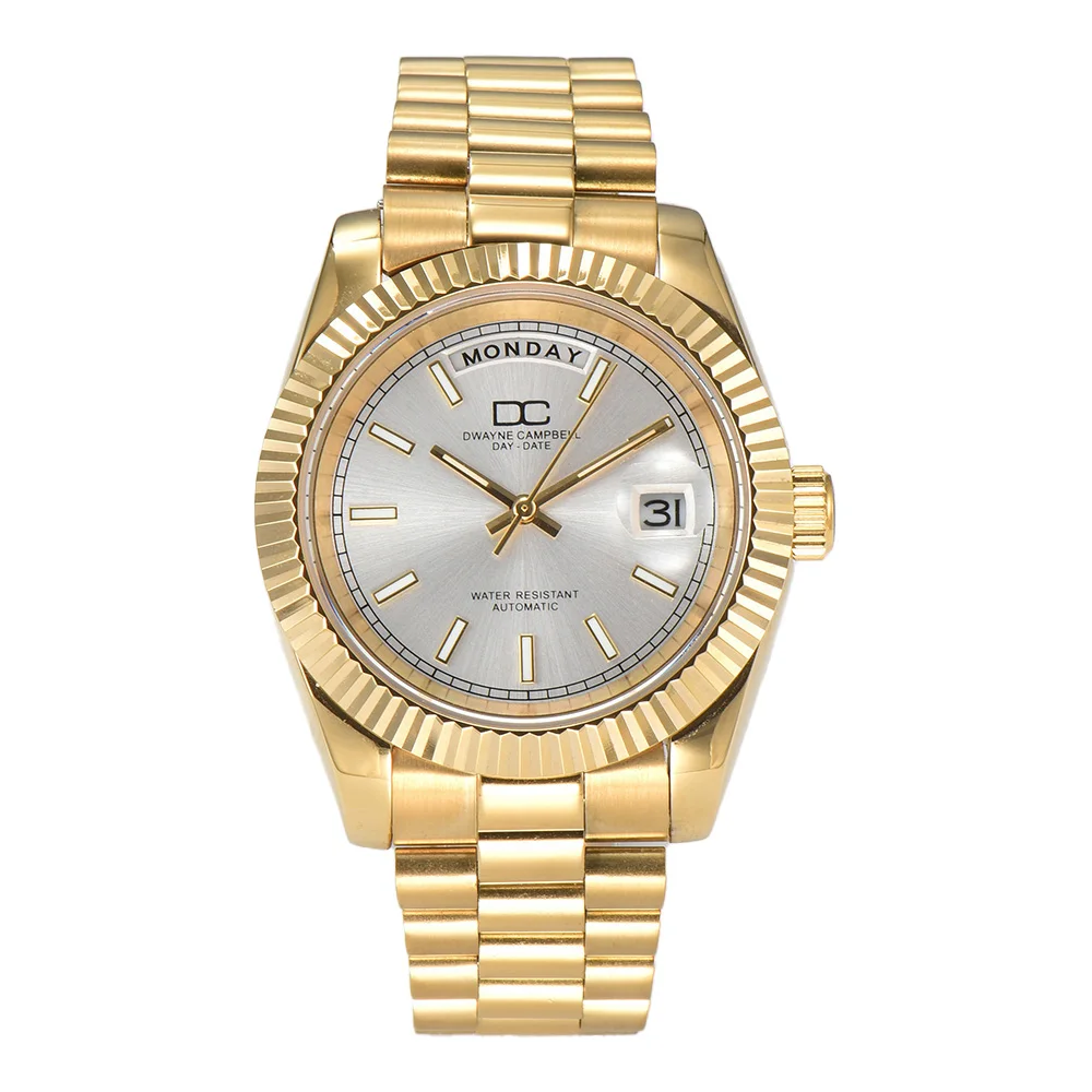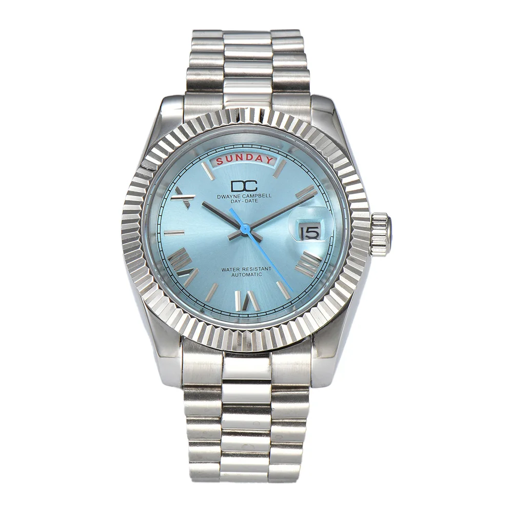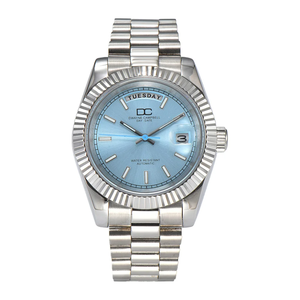 Experience timeless elegance with this customized men’s automatic mechanical watch featuring a sleek 40mm stainless steel case and band. Powered by the reliable Japan Miyota 8285 movement, it offers precise timekeeping along with a calendar and week display. The sapphire crystal window ensures durability and clarity, while the water resistance depth of 5Bar provides everyday protection. Personalize it with your logo for a unique touch—perfect for adding a sophisticated statement to any wardrobe. This luxury timepiece combines craftsmanship and style, making it a perfect choice for collectors who appreciate detail and quality design.