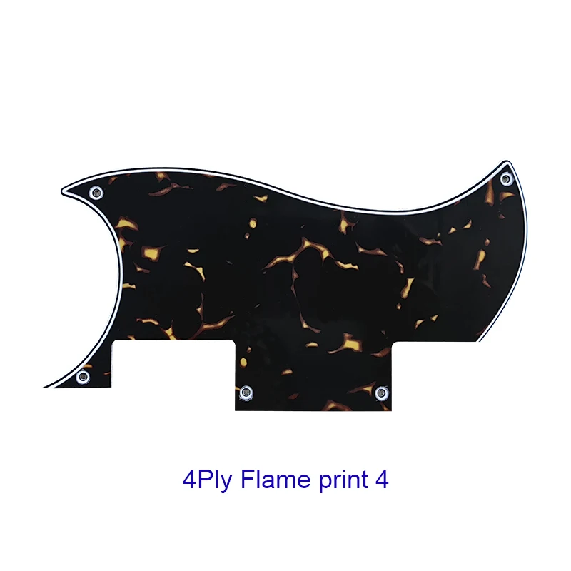This custom guitar pickguard is specifically designed for the Epiphone Special SG guitar, showcasing an amazing array of colors and patterns. The pickguard is constructed from high-quality PVC and composite materials, featuring a durable 3-ply black design, ensuring both aesthetic appeal and longevity. Weighing 200g, this pickguard not only enhances the visual aspect of the guitar but also provides an anti-scratch surface for optimal protection. The pickguard arrives with a protective film on top to maintain its flawless surface. Available in vibrant colors including flame prints, tortoise shell, blue, red, white, cream yellow, parchment pearl, and leopard print, it guarantees a perfect fit and stylish upgrade.