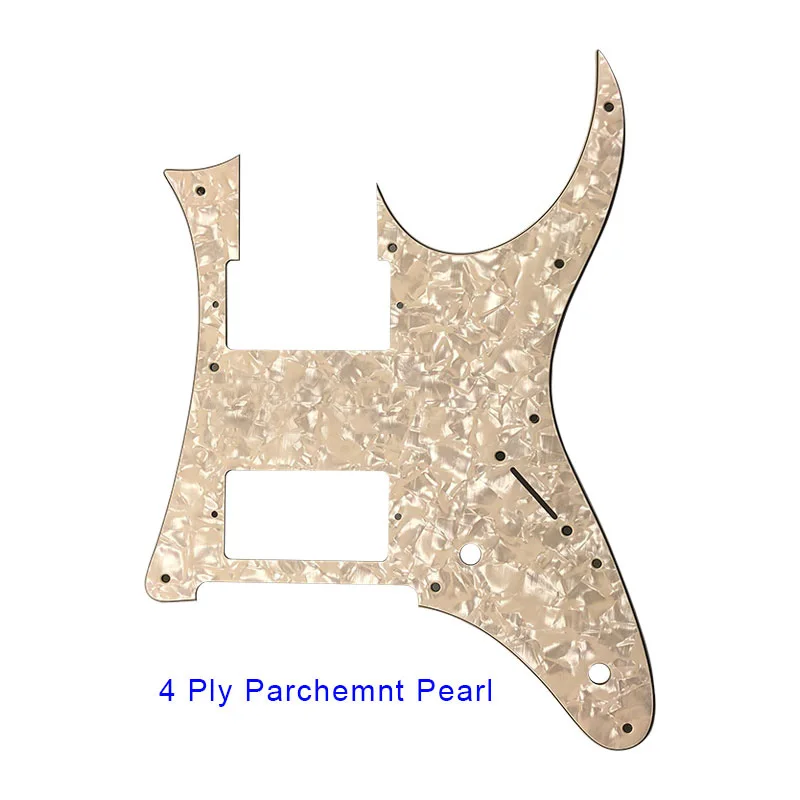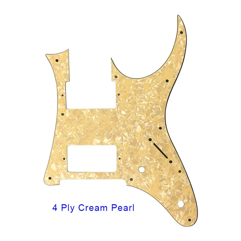 Enhance your MIJ Ibanez RG350 DXZ with this custom 4-ply pickguard, available in vibrant colors such as Cream Pearl, Green Pearl, Pink Pearl, Tortoise and more. Crafted from PVC and composite materials, it features an aluminum foil shield for effective noise reduction and a smooth, glossy finish that highlights craftsmanship. Weighing approximately 200 grams, it includes one pickguard with a protective film and ten mounting screws for easy installation. Designed specifically for the RG350 DXZ model, this stylish replacement part combines durability, functionality, and eye-catching aesthetics, giving your guitar a personalized, refined look.