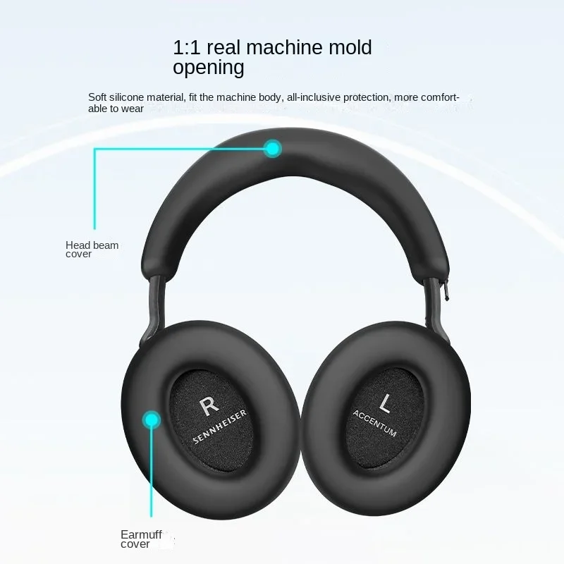 Experience the perfect upgrade with this premium silicone protective sleeve and leather ear pads designed specifically for the Sennheiser MOMENTUM 4 head-worn earphones. Crafted for durability and style, the waterproof and washable sleeve features a textured, matte black finish, offering both protection and a sleek aesthetic. Its elongated, curved shape fits snugly over the headband, complemented by a practical zipper for easy removal and adjustment. The included leather ear pads provide plush comfort, noise isolation, and enhanced sound quality, suitable for high-end audio enthusiasts. Available in vibrant colors like blue, red, and light gray, these accessories not only protect your investment but also personalize your listening experience, blending functionality with an elegant design.