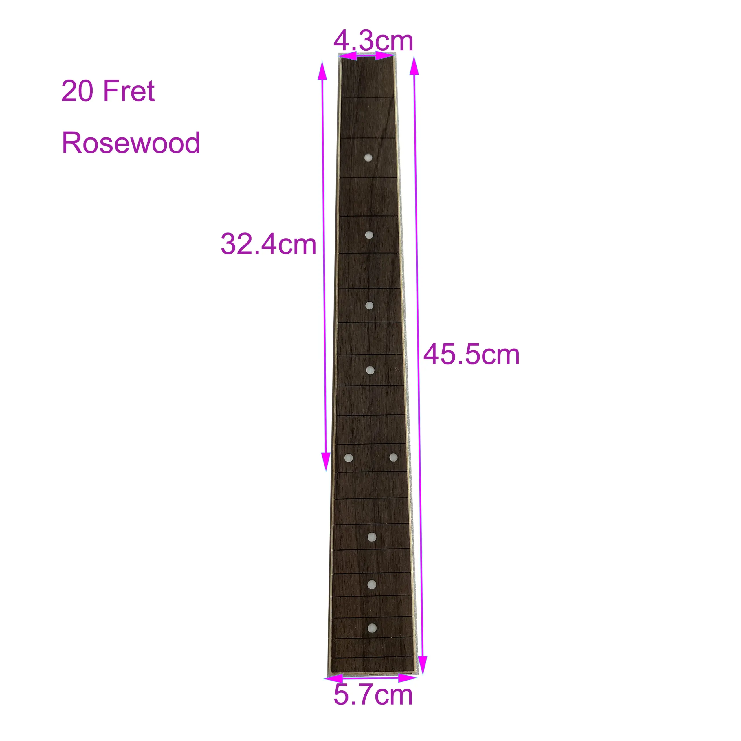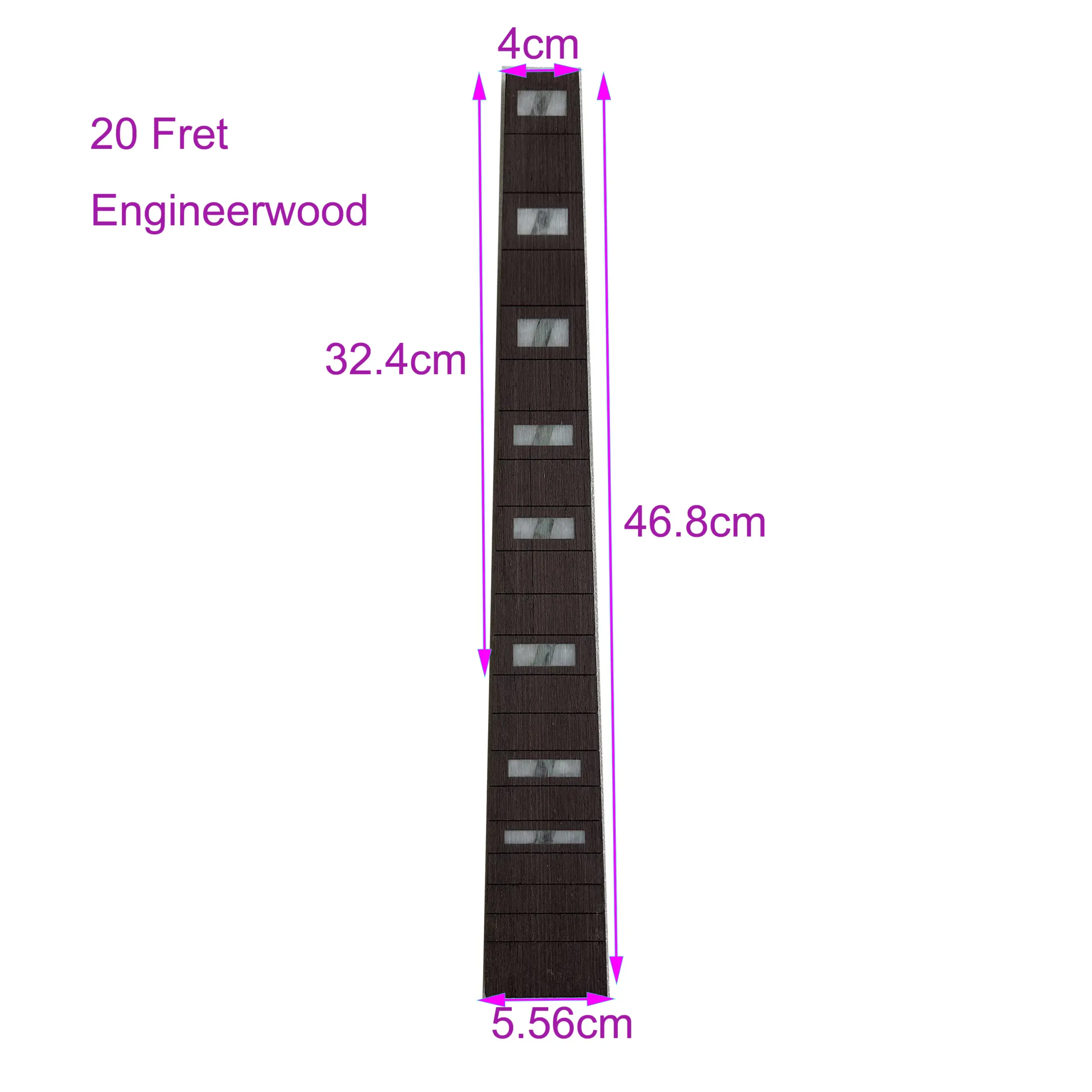 Enhance your acoustic folk guitar with this high-quality 20-fret DIY fingerboard, crafted from premium wood and available in three striking colors: brown, burgundy, and chocolate. Featuring a customized, irregular shape, each piece adds a unique handcrafted touch to your instrument. The fingerboard showcases a smooth, finely finished surface with inlaid decorative elements, including small circular and rectangular inlays with pearl or abalone-like luster, enhancing its aesthetic appeal. Designed for easy installation, it provides a perfect upgrade for DIY guitar modification projects, allowing you to personalize your instrument with refined craftsmanship and natural beauty.