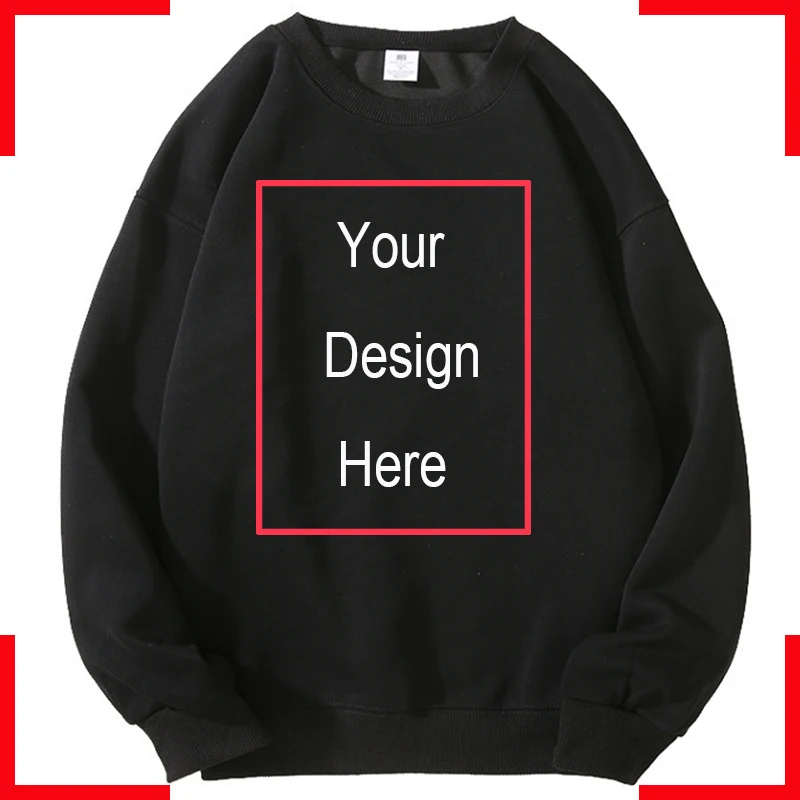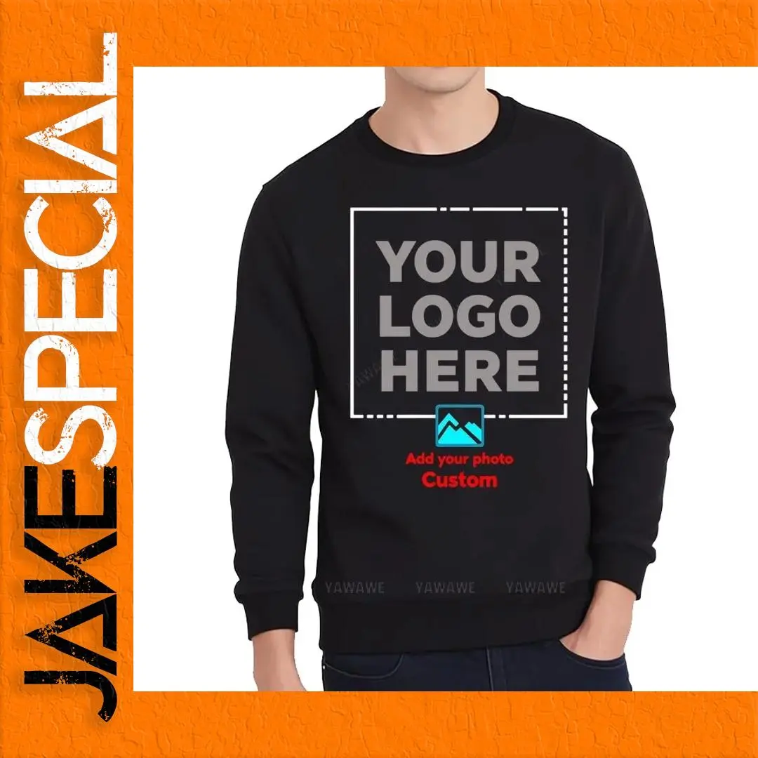 Embrace comfort and style with this customizable black hoodie, perfect for casual wear in spring and autumn. Designed with a regular fit, it features a classic O-neck collar and full-length sleeves for ease of movement. The breathable blend of polyester and cotton ensures a soft and comfortable experience all day long. With the prominent text “YOUR LOGO HERE” in bold gray letters, it invites personality and creativity. Below, the phrase “Add your photo Custom” in bright red sparks imagination, allowing you to express your unique style. Perfect for every occasion, this hoodie quickly becomes your go-to favorite for relaxed outings.