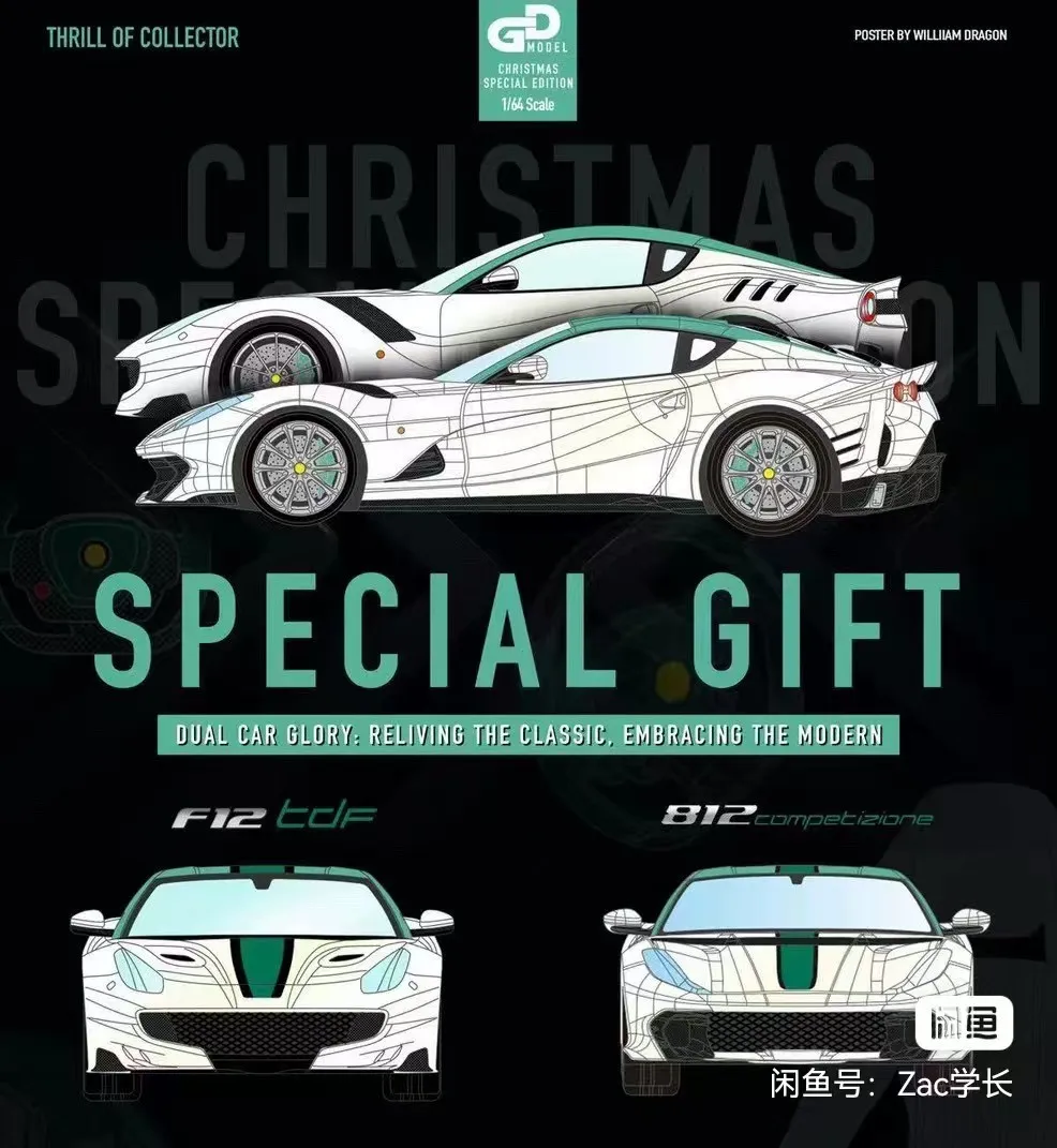 The 1:64 scale customized double car model, resembling the stunning 812C F12 Limited Edition, showcases exquisite craftsmanship and vibrant detailing. Perfect for your collection, it features a striking metallic blue color that glistens beautifully under light, paired with a sleek silhouette that captures the essence of luxury sports cars. The model is approximately 7 cm in size, expertly crafted from durable resin and alloy materials, ensuring its longevity as a statement piece for any enthusiast. You’ll notice the intricate design details—from the stylish grille and sharp headlights to the aerodynamic curves and meticulously crafted alloy wheels. This piece not only celebrates innovative automotive design but is designed exclusively as an ornament for adult collectors.