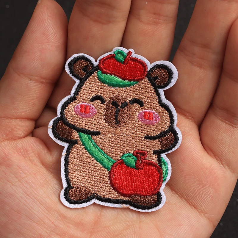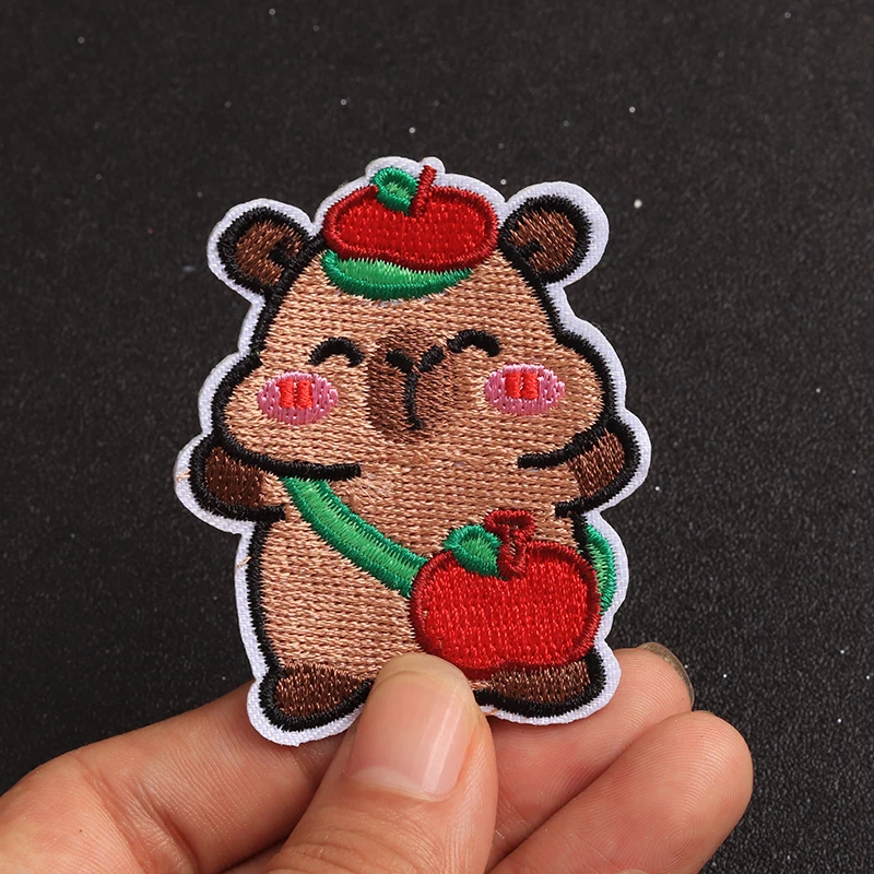 Add a touch of whimsy to your style with these 5 pieces of cute cartoon Capybara patches, each measuring 5.7 x 4.7 cm. Crafted from durable, eco-friendly non-woven fabric, these handmade patches are perfect for iron-on application. Featuring a cheerful, 3D Capybara design with a playful apple hat and tomato, these patches brighten up any item, including t-shirts, tops, pants, coats, bags, and curtains. Use a household iron or heat press machine for easy application. With lively anime motifs and meticulous stitching, these patches allow you to express your unique personality effortlessly.
