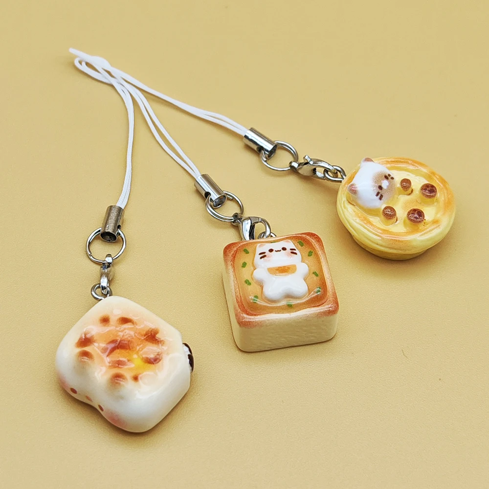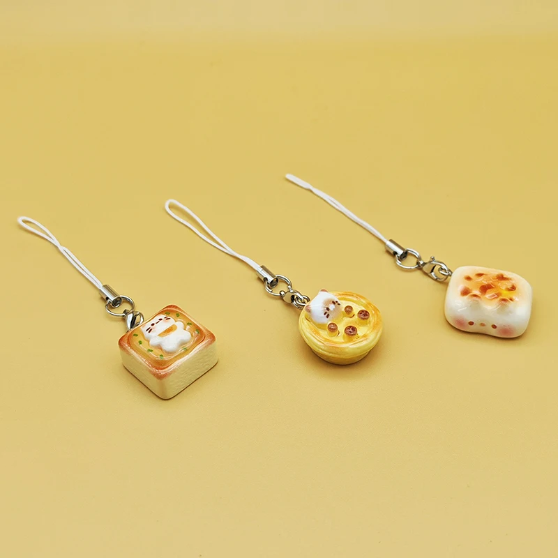 This charming set of cat bread egg tart phone charms