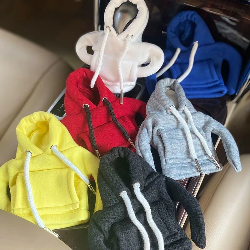 Transform your car’s interior with this adorable universal gear shift knob hoodie, crafted from durable knitted velour made of cotton and polyester. Available in vibrant colors including black, green, pink, red, rose red, white, wine red, and yellow, it features a cute, cartoon-inspired design with adjustable hoodie strings for a snug fit. Designed to fit most gear shift handles, this cozy cover adds a playful touch while protecting your gear shift from heat and cold. Easy to clean through normal washing, it combines style, practicality, and comfort, making your driving experience more enjoyable and personalized.