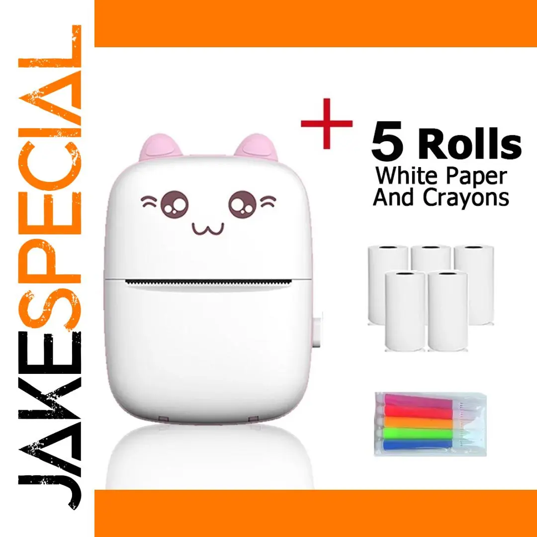 Experience effortless on-the-go printing with this cute, compact thermal printer measuring 20×13×8 cm, crafted from durable ABS plastic. Featuring a playful cat-inspired design with large shiny eyes, blush marks, a smiling mouth, and cat ear accents, it adds charm to your workspace. The device offers a resolution of 200 dpi, wireless Bluetooth connectivity, and inkless thermal technology for clear, paper-only prints using standard thermal paper. Available in charming blue or pink, it includes a USB cable, instruction manual, and one roll of thermal paper. Its user-friendly interface and reliable design make it perfect for labeling, notes, or creative projects anytime, anywhere.