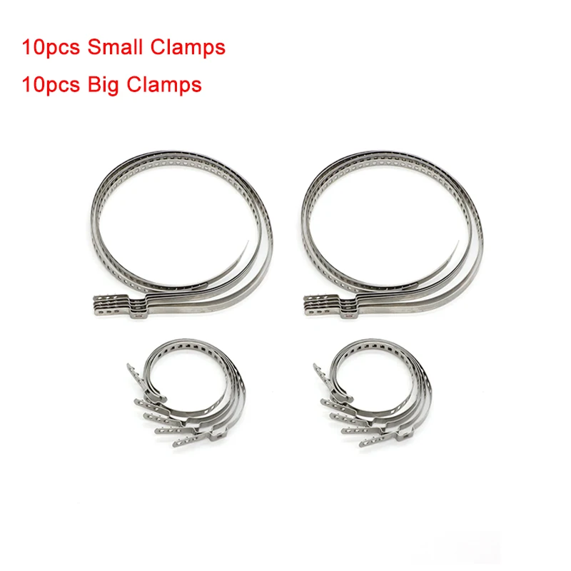 - Large clamps range from 69.85mm to 127.00mm, providing a tight, secure fit for larger automotive CV joints, featuring a smooth, shiny surface and precise semicircular shape.