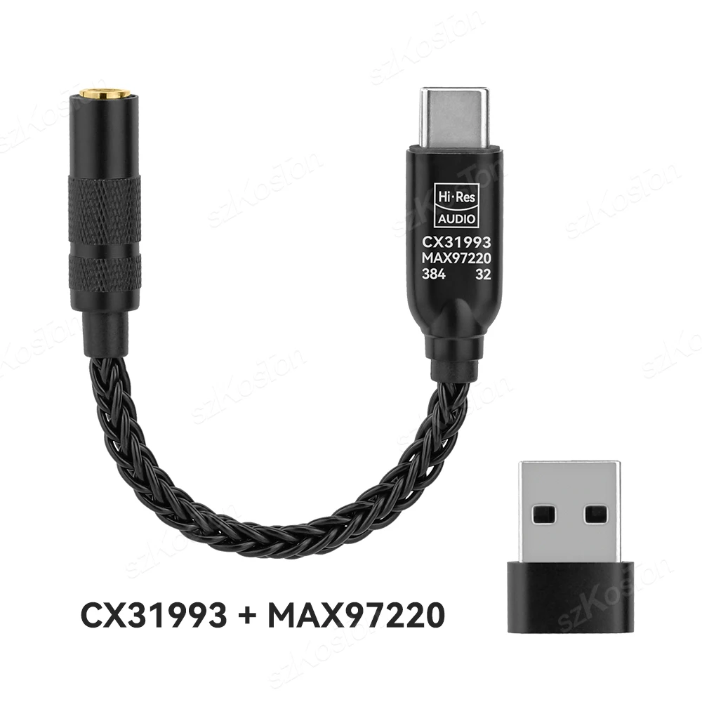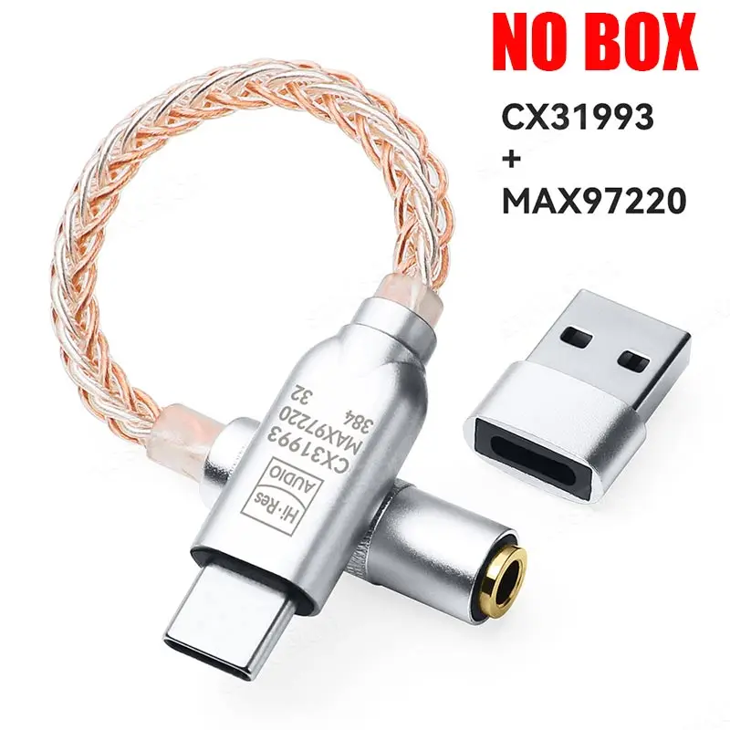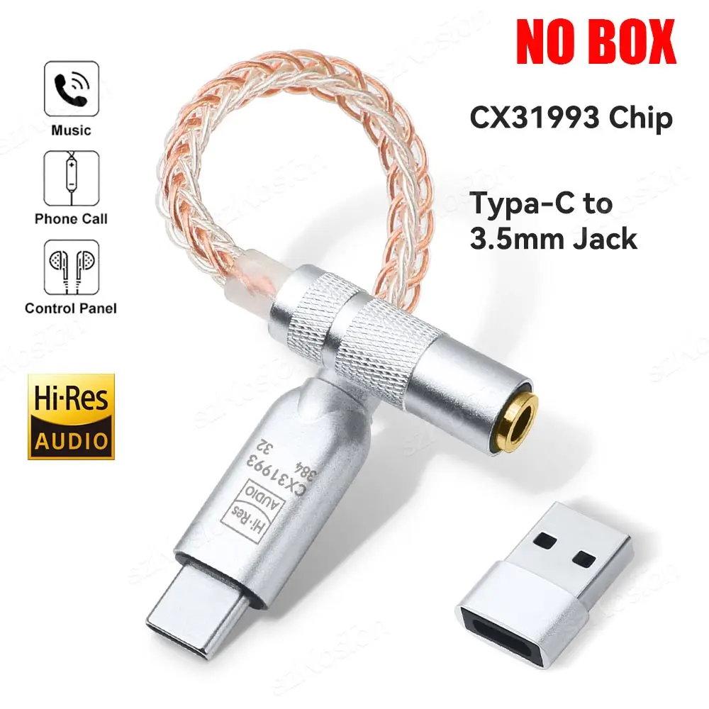 With the CX31993 USB Type-C to 3.5mm audio interface headphone amplifier, immerse yourself in unparalleled audio clarity. This sleek adapter features a modern design with a total length of 13 cm. The transparent braided cable, composed of four strands of sterling silver and four strands of elegant blue, not only enhances durability but also adds a touch of sophistication to your setup. It supports high-resolution audio standards with a sampling rate of 32-bit/384 kHz. Whether you're on your commute or at home, feel the difference in sound quality that this adapter brings to your favorite headphones.