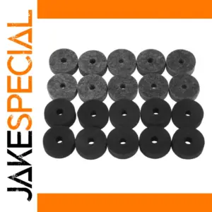 Enhance your drum setup with this set of 10 high-quality felt pads, designed specifically for cymbal protection. Crafted from durable, soft felt, these lightweight washers measure approximately 4 x 4 x 1.5 cm, with a central hole of about 1 cm. Their simple, functional design ensures they fit easily onto most cymbal stands, effectively preventing metal-to-metal contact that can cause unwanted noise and damage. The set includes a mix of black and grey pads, adding a subtle contrast that maintains a professional, clean look. Perfect for cymbals ranging from 12 to 16″, these pads improve sound clarity and extend the lifespan of your cymbals while offering a discreet, minimalist aesthetic. They are an essential upgrade for any serious drummer’s kit.