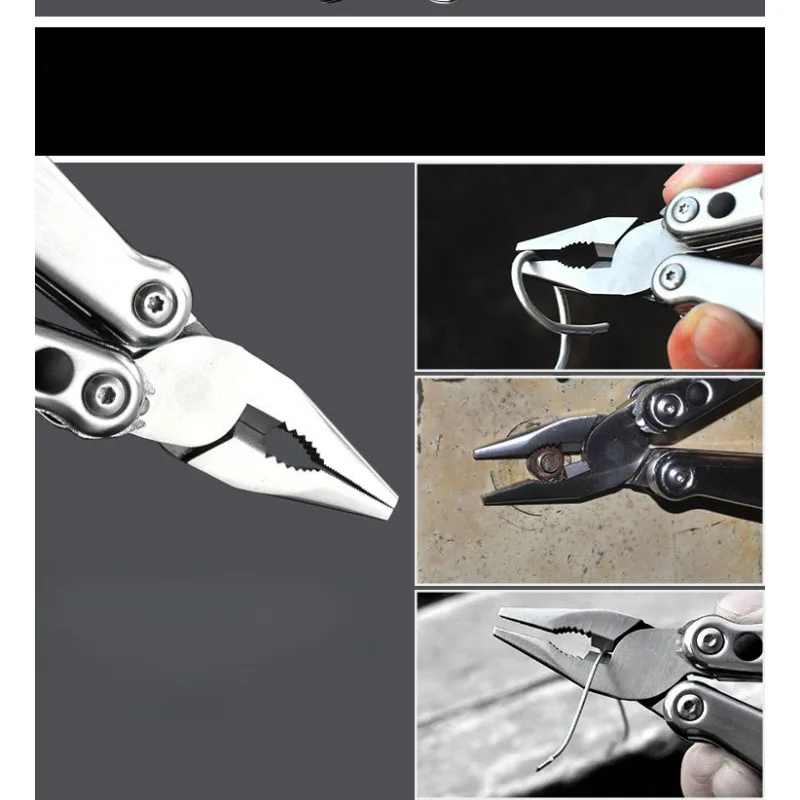 Experience the versatility and reliability of this high-quality stainless steel multi-tool, model L10, available in L10-Big and L10-Mini options. Featuring a sleek, straight handle design, it combines a sharp foldable knife, precise scissors, and various pliers, including needle-nose and wire-cutting functions, making it ideal for camping, outdoor adventures, or everyday carry. Its compact, multifunctional construction ensures durability, ease of use, and safe storage. Whether you’re tackling tasks in the wilderness or handling daily repairs, this new, customizable tool offers unmatched flexibility and strength, enhancing your preparedness and confidence in any situation.