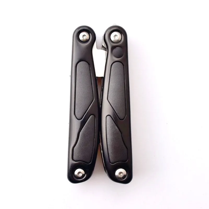 Imagine having the perfect companion for your outdoor adventures or daily tasks—this Daicamping L14 multifunctional folding tool. Its sleek black handle offers an ergonomic, straight-style design with a textured grip, ensuring secure handling in any situation. Equipped with a stainless steel knife, scissors, pliers, and a serrated saw, all seamlessly integrated, this tool provides convenience and durability. The polished, reflective metal surfaces contrast beautifully with the matte black handle, creating a modern and utilitarian look. Compact yet versatile, it folds into a portable form, ready to tackle camping, hiking, or everyday challenges. Building trust, this new-condition device is crafted for those who value craftsmanship, reliability, and multi-purpose functionality.