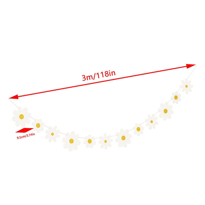 - Includes 12 daisy-shaped paper cutouts printed on both sides, attached to a 3-meter ribbon for versatile decor options at your event.