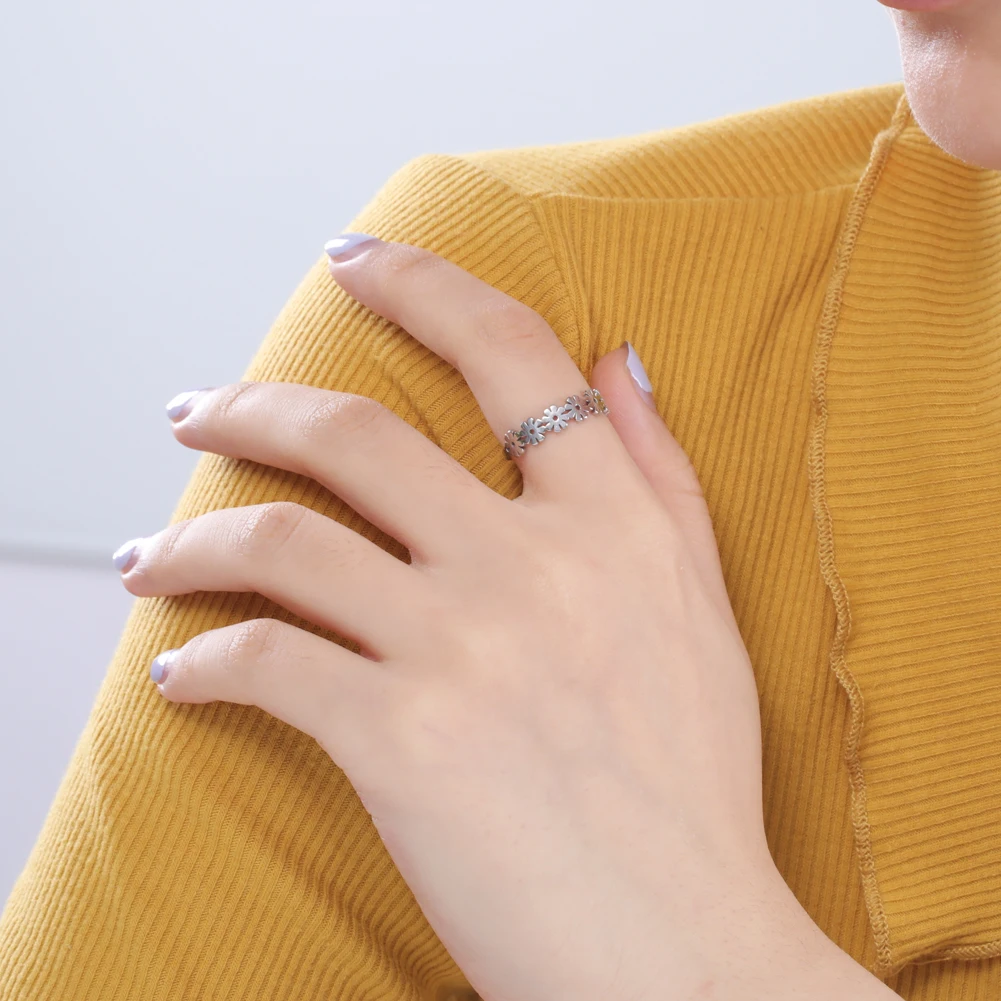 Discover the timeless charm of this stainless steel daisy ring. Imagine yourself wearing it on a special day or as your everyday emblem of beauty. Its trendy floral design, combined with durable craftsmanship, ensures you’ll enjoy this piece for years to come. Whether as a thoughtful gift or a personal treasure, this versatile ring seamlessly matches any outfit while offering comfort and sparkle. Elevate your jewelry collection today with this exquisite, trendy, and durable daisy ring designed to celebrate femininity and style every day.