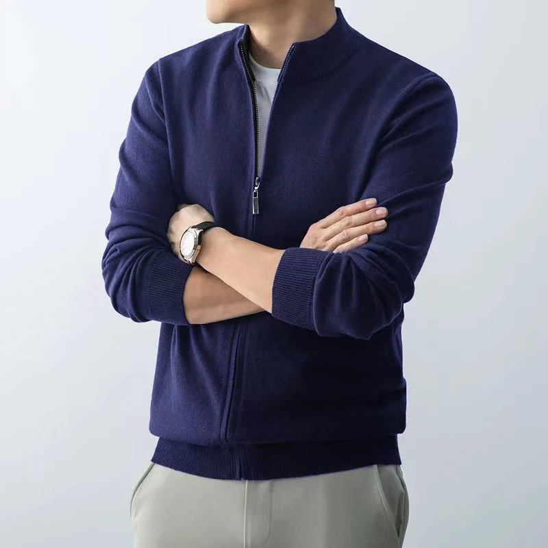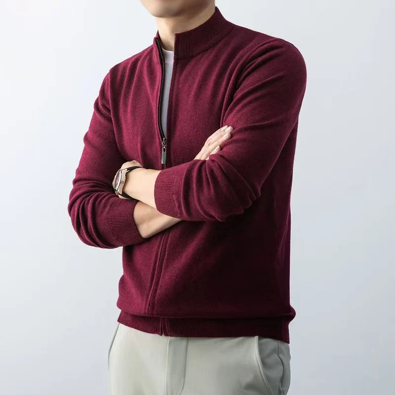 Experience style and comfort with this men’s slim-fit zipper cardigan sweater, crafted from a blend of polyester, nylon, and rayon for warmth during autumn and winter. Featuring a solid pattern knitwear in six versatile colors, including dark gray and black, it offers a sleek, minimalist look suitable for casual wear. The full-zip closure extends from the hem to the crew neck collar, complemented by ribbed cuffs and hem for a snug fit. Available in six sizes from S to XXXL, with lengths ranging from 98 cm to 111 cm, this standard-thickness sweater is hoodless and designed for effortless everyday style.