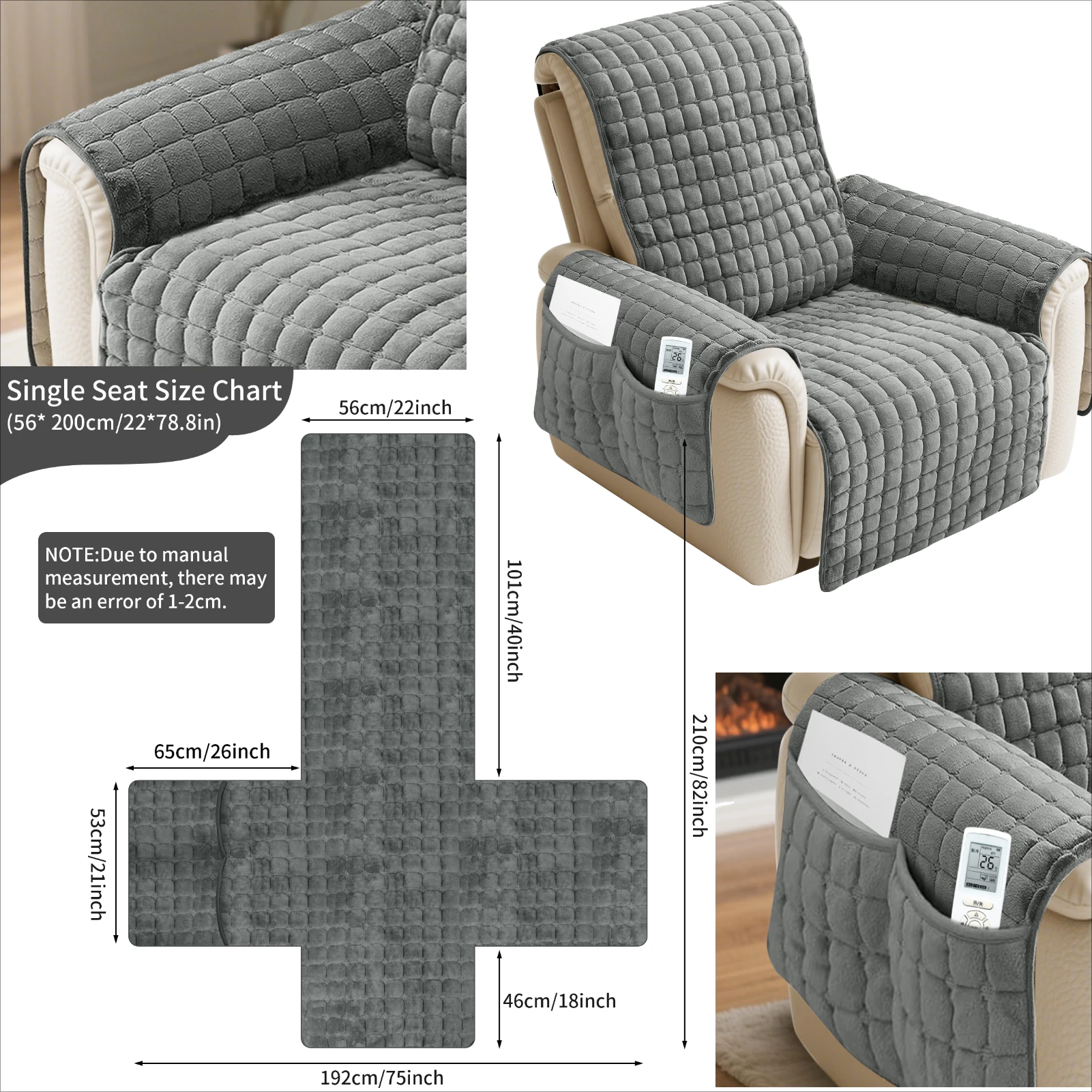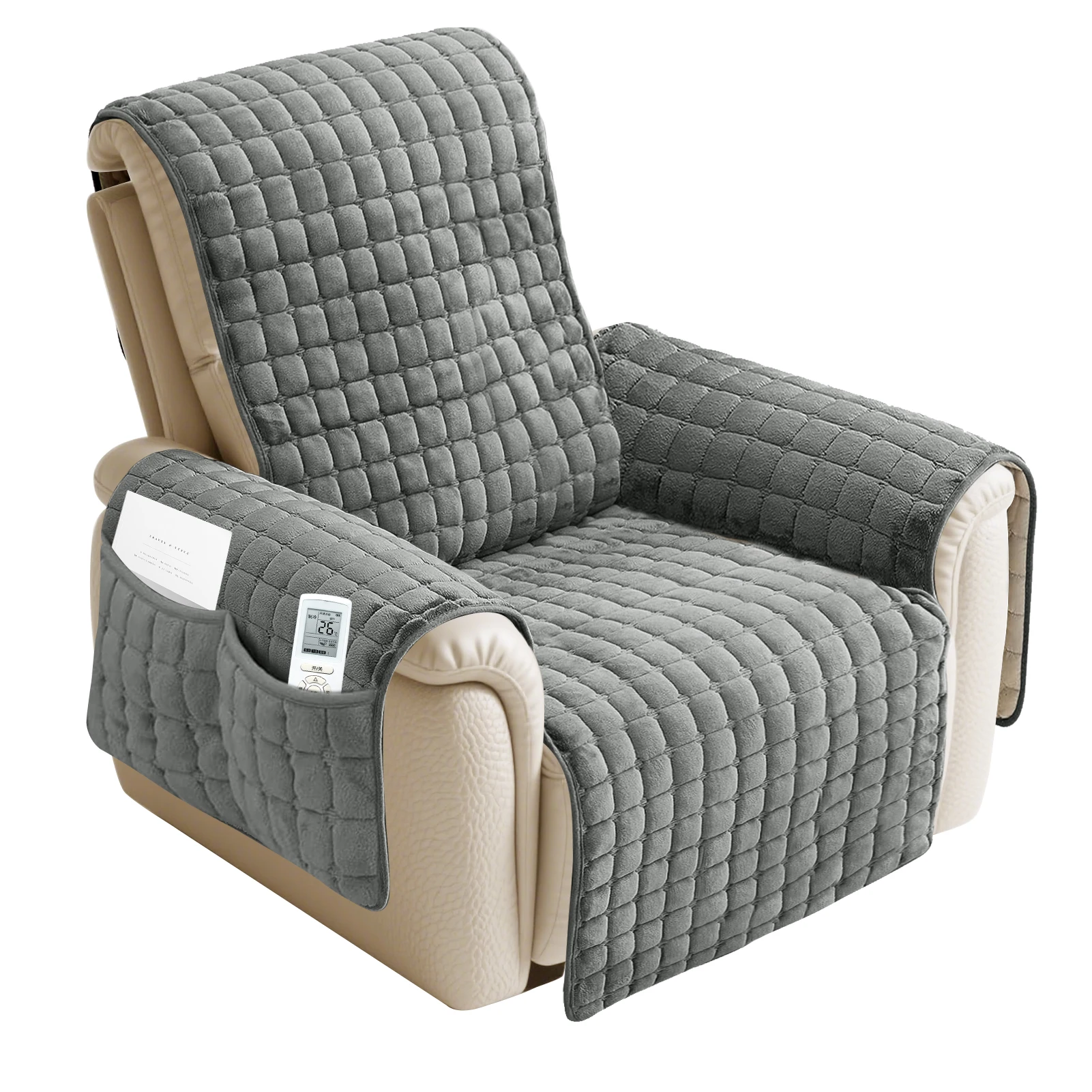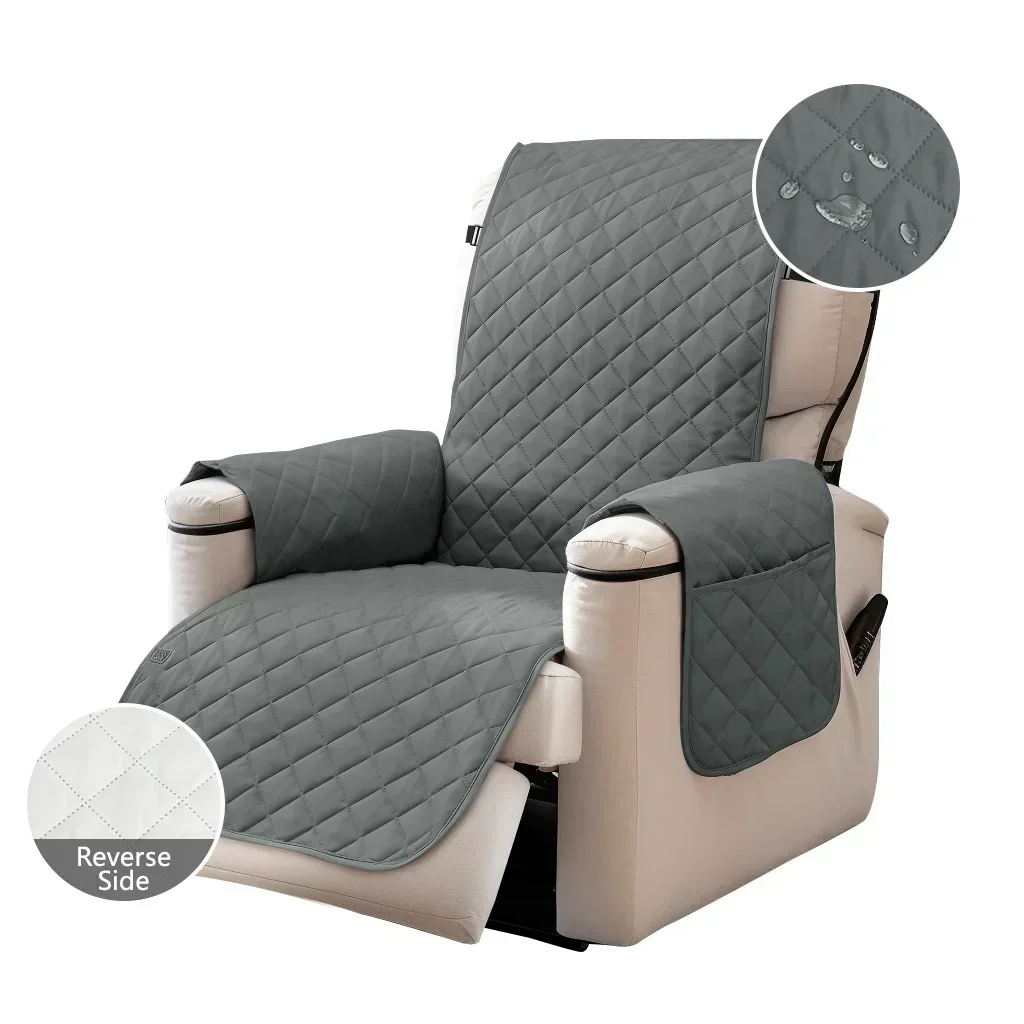 Transform your recliner into a cozy, protected haven with this elegant dark gray slipcover. Designed with multi-layer waterproof construction, it combines soft, skin-friendly waterproof fiber fabric, a waterproof TPU film, and plush textile padding to ensure durability and comfort. Its textured diamond quilting pattern adds a touch of luxury while enhancing its plush appearance. The sleek, solid color and clean edges, finished with ultrasonic crimping and pressed piping, give a polished look that complements any home decor. Practical yet refined, this cover shields your furniture from spills, pet fur, and everyday wear, making it perfect for fall and winter. Easy to install and care for, it's the ideal safeguard for busy households with pets and children.