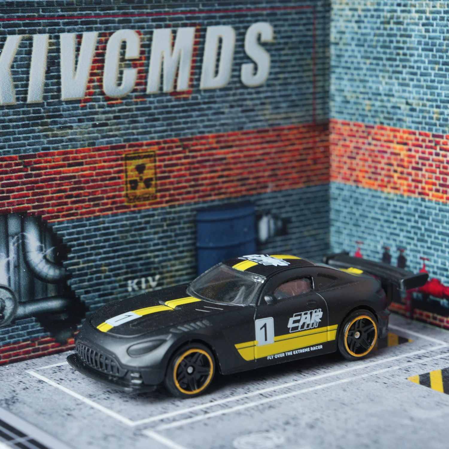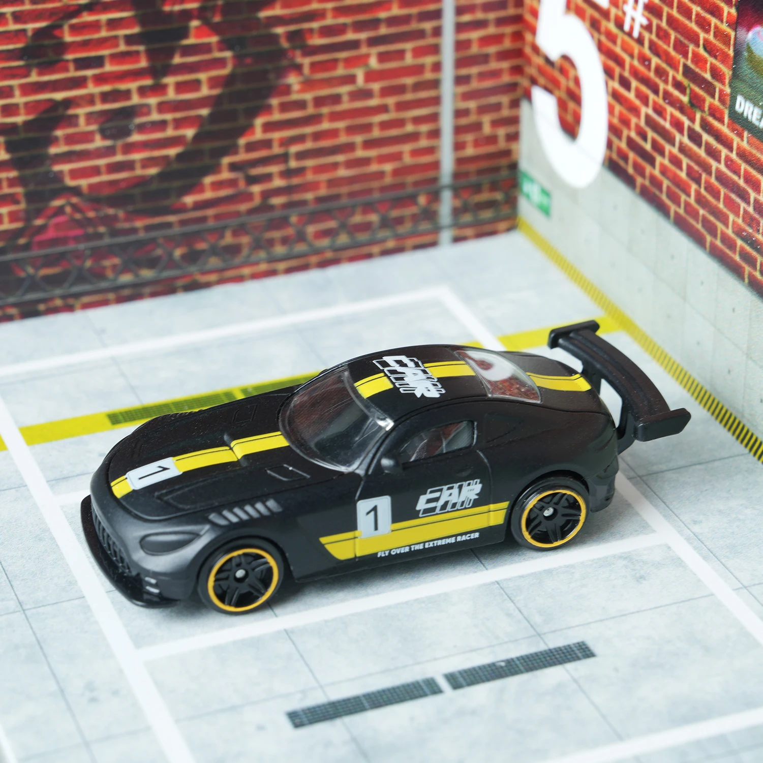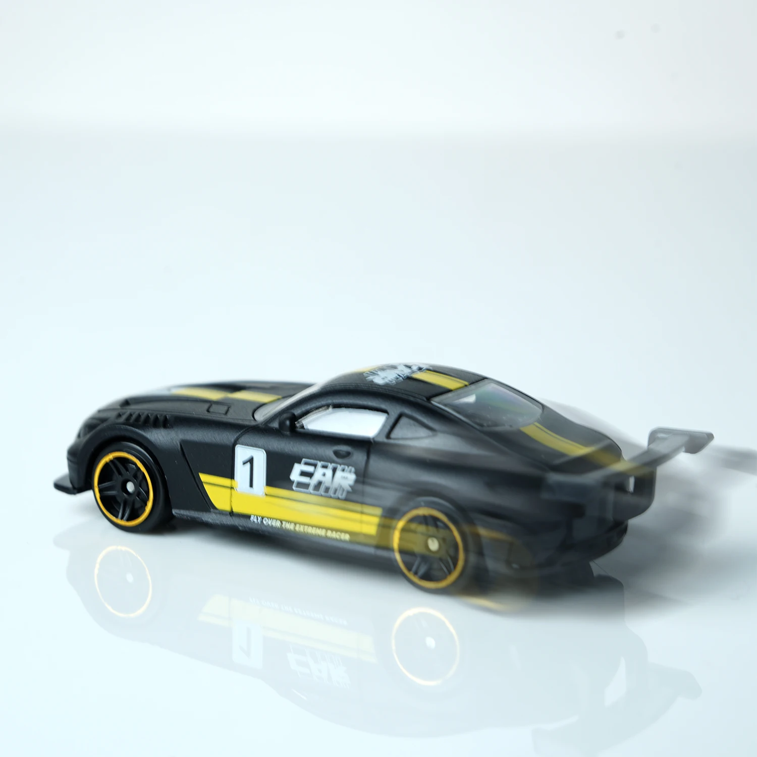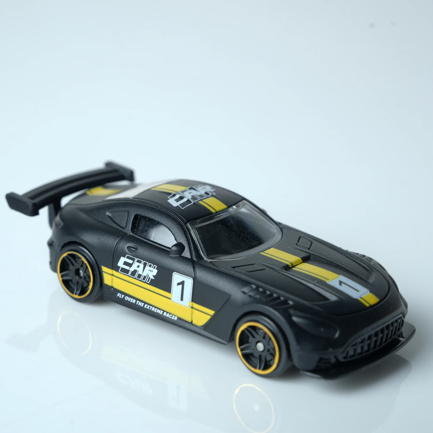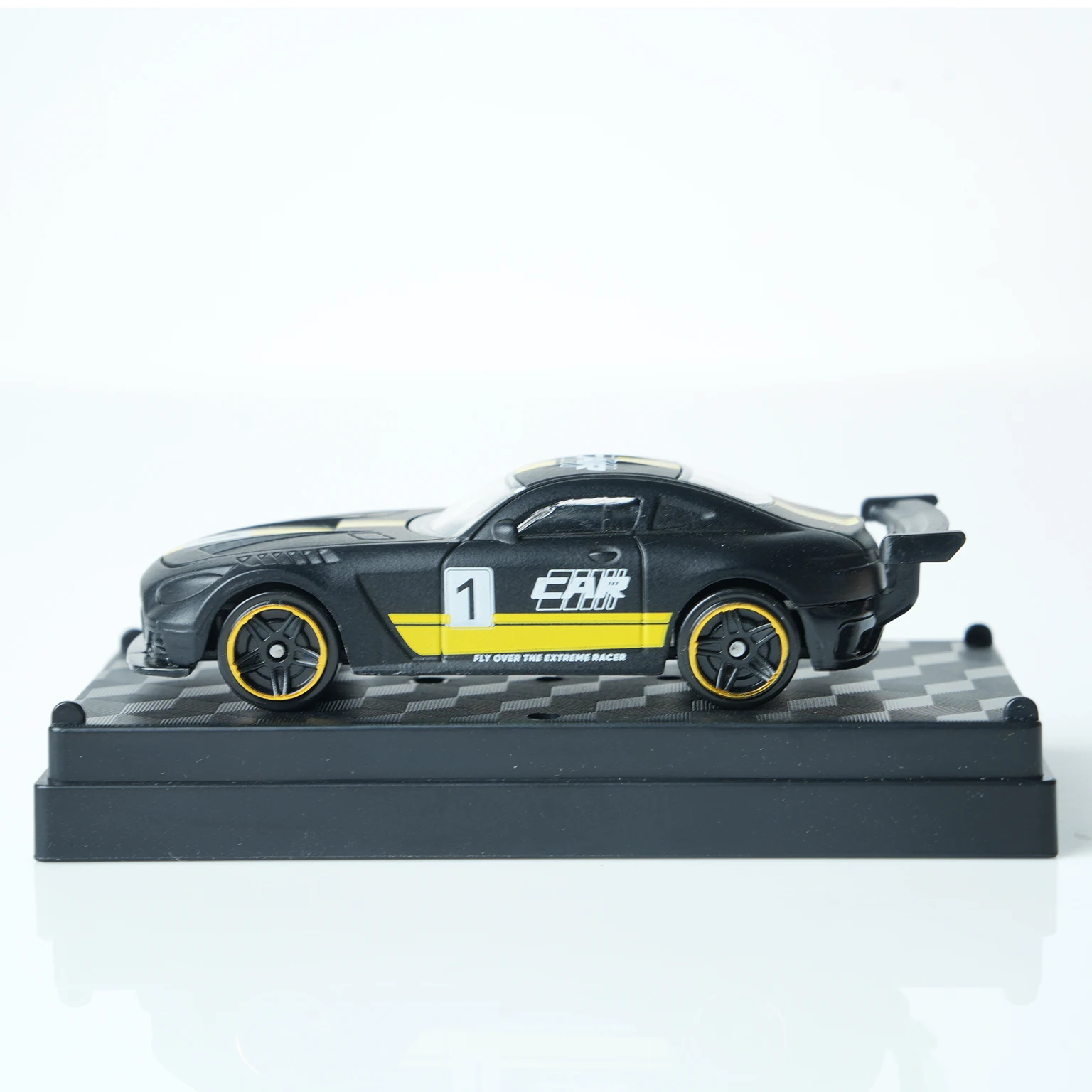 Experience the thrill of high-speed racing with this meticulously crafted 1:64 scale die-cast model, designed to captivate enthusiasts and collectors alike. Its sleek dark night black alloy body is accented with vibrant yellow stripes along the center, hood, roof, and sides, creating a striking visual contrast that embodies speed and agility. The aerodynamic design, complete with a detailed rear wing and smooth, rounded contours, enhances realism and sporty sophistication. Translucent windows mimic real glass, while white decals and stylized markings, including the prominent number ‘1', emphasize its racing heritage. Compact yet highly detailed, this model is perfect for desktop track racing, holiday gifts, and as an elegant ornament for any racing enthusiast’s collection.