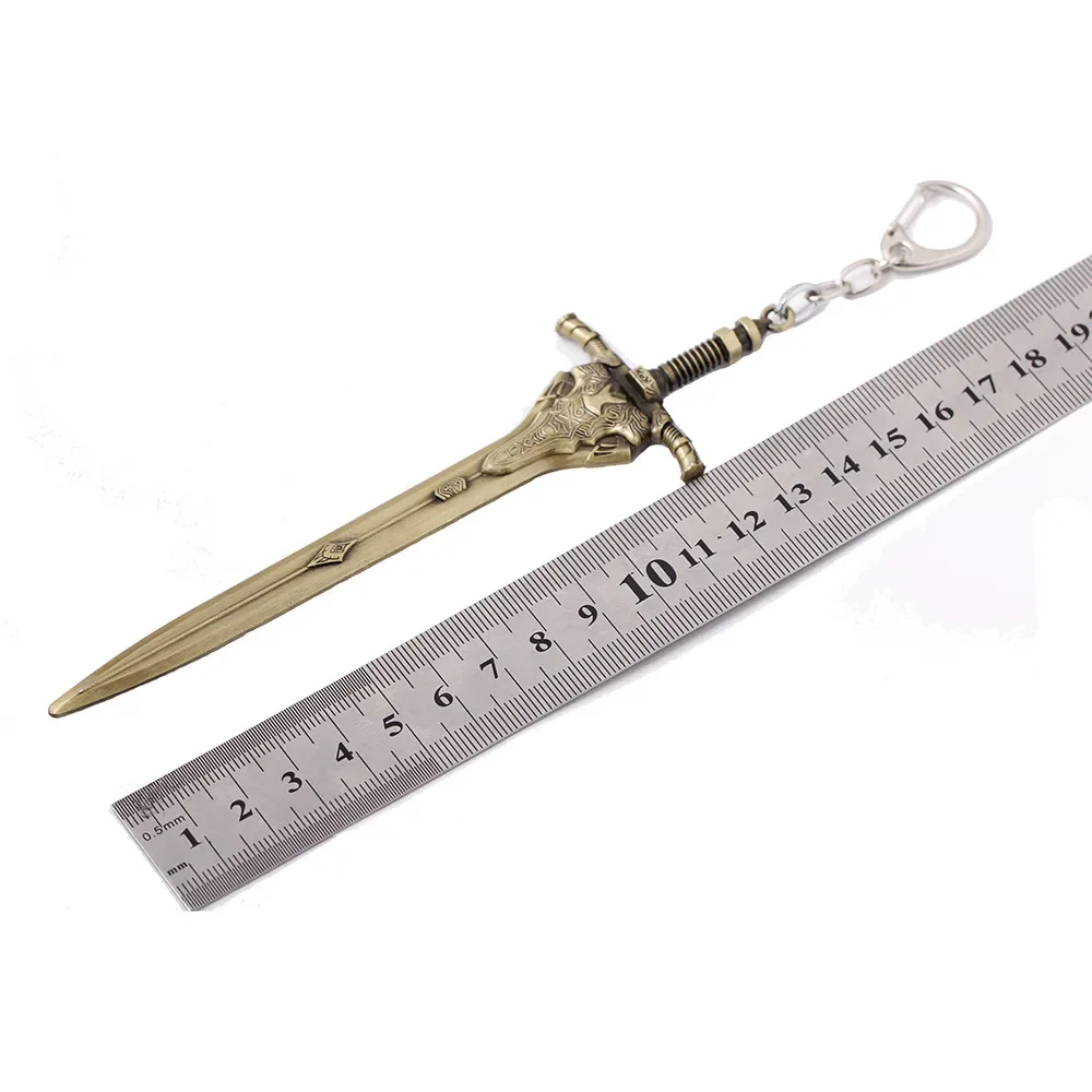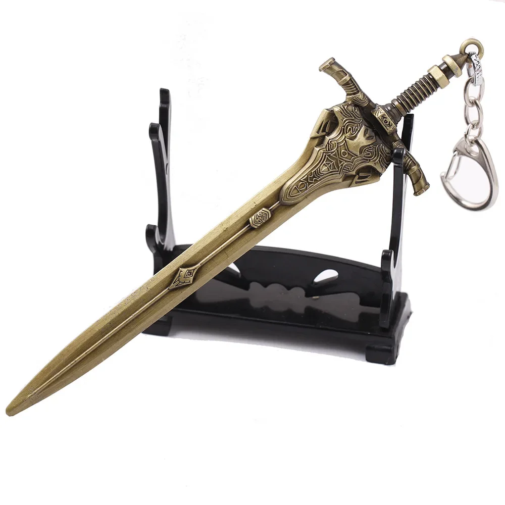 Discover the Dark Souls Artorias pendant keychain, a 15cm accessory crafted from zinc alloy with an antique bronze finish. Featuring intricate medieval fantasy-inspired engravings and textured blades that evoke armor and mythical motifs, this punk-style design includes a spike pattern, a silver-colored lobster clasp, and a short chain for easy attachment. Its vintage, weathered look makes it a versatile collectible piece, perfect for fans of dark fantasy or medieval aesthetics. Lightweight and durable, it suits casual or party occasions, adding a touch of rugged elegance to keys, bags, or accessories for men and boys alike.