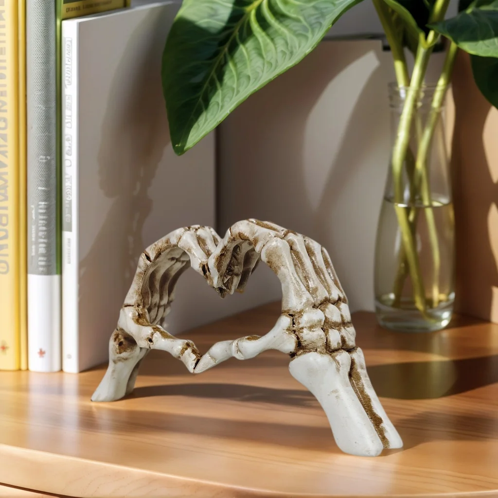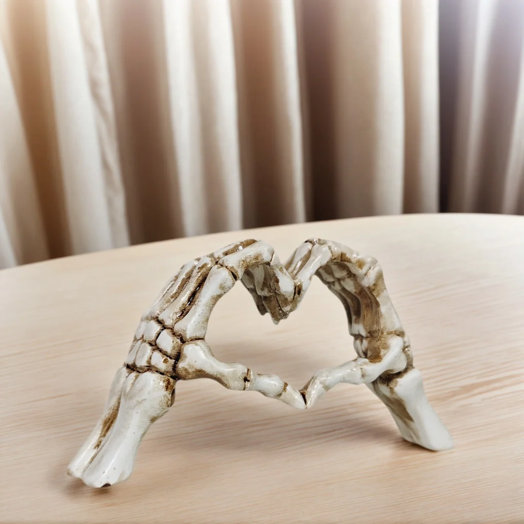 Transform your space with this captivating, gothic-inspired piece. Its detailed craftsmanship and dark artistic style make it an eye-catching centerpiece. Whether you place it on your desk or as part of a Halloween display, it conveys a mood that is both mysterious and elegant. Don't wait to add this distinctive skeleton hand heart statue to your collection—it’s a perfect way to express your love for dark, creative decor. Order today and elevate your interior with a touch of gothic artistry that will impress every visitor.