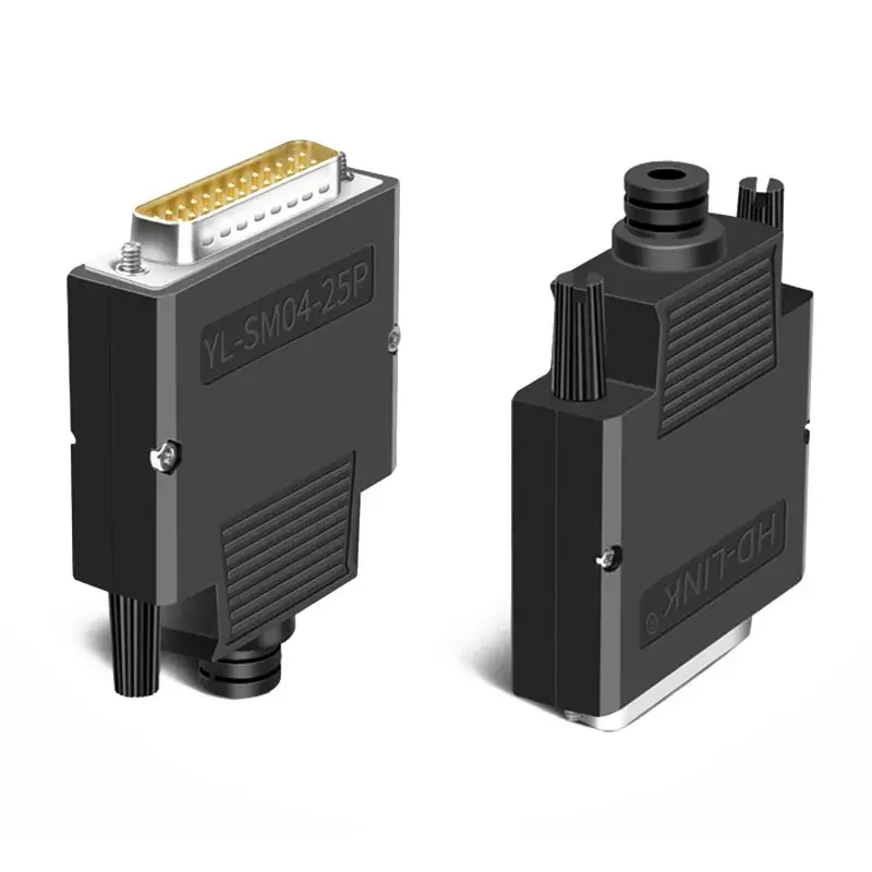 - It features a standard 25-pin D-sub female port, with visible metal contacts precisely aligned in a horizontal row for reliable data transfer.