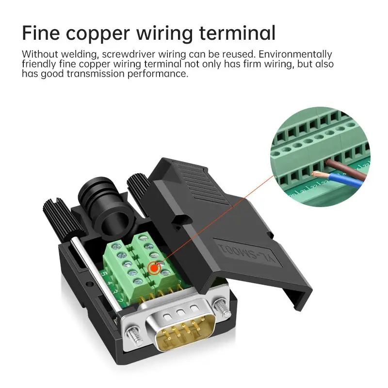 Enhance your communication projects today with this reliable, easy-to-install DB9 solderless connector. Its high-quality construction, versatile color options, and secure wiring make it the smart choice for professionals seeking durability and efficiency. Imagine effortlessly connecting your RS232 or RS485 devices with confidence, knowing you have a sturdy, dependable component. Don't wait—upgrade your setup now and experience improved performance and peace of mind in every connection. Your technical solutions deserve the best, and this connector delivers just that.