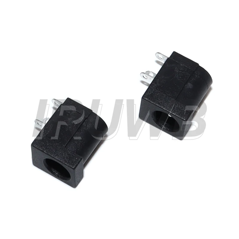 This set of 10 black DC-005 power jack sockets features a barrel-type design with a 5.5×2.1mm dimensions and right-angle PCB mount, ideal for reliable electronic device power connections. Crafted for high stability, durability, and self-healing performance, these sockets are perfect for seamless integration into various projects needing a secure, long-lasting power input solution. The sleek black plastic housing with a compact, rectangular shape and smooth matte finish showcases a modern, utilitarian aesthetic, enhanced by silver-colored terminals for easy soldering. Whether replacing or expanding your setup, these high-quality sockets ensure a dependable connection every time.