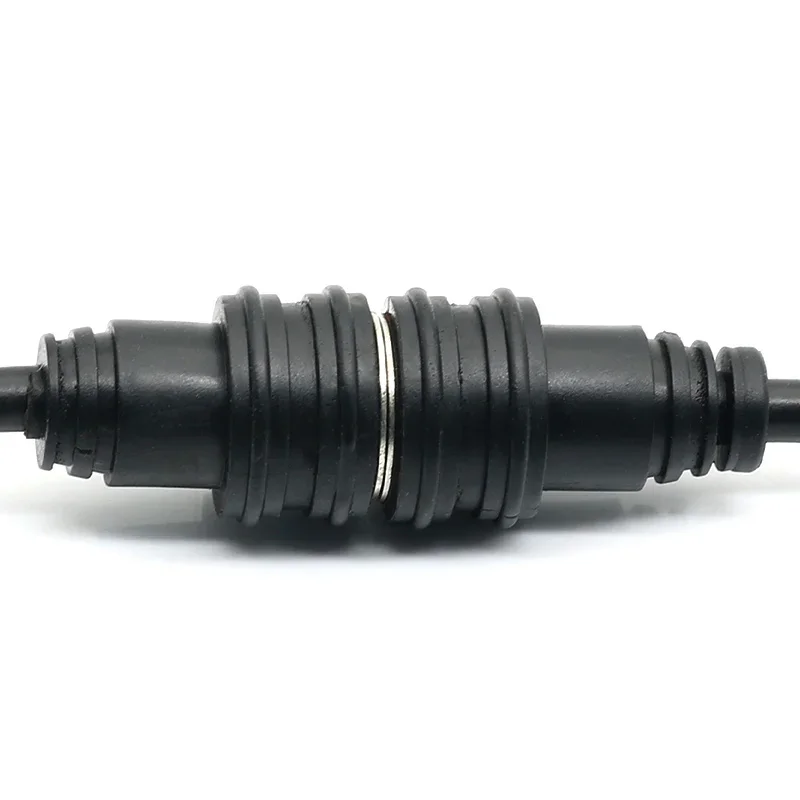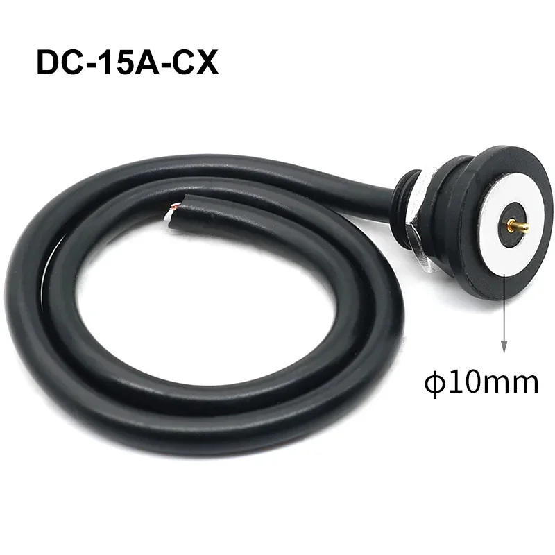 Experience reliable power transfer with the DC-15A-CX magnetic circular connector, designed for low-voltage applications. Featuring a 3A rated current, it includes a durable sheathed wire with a length of 22cm and 22AWG wire gauge for flexibility and durability. Available in male, female, or both configurations, its sleek, circular design with a matte black housing and contrasting white faceplate provides a modern, industrial look. The small central metallic contact ensures secure, intelligent connection, making it ideal for electronic and hobbyist projects. Its seamless integrated design emphasizes simplicity and functionality, delivering a clean, professional appearance.