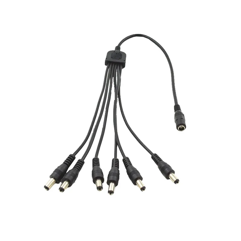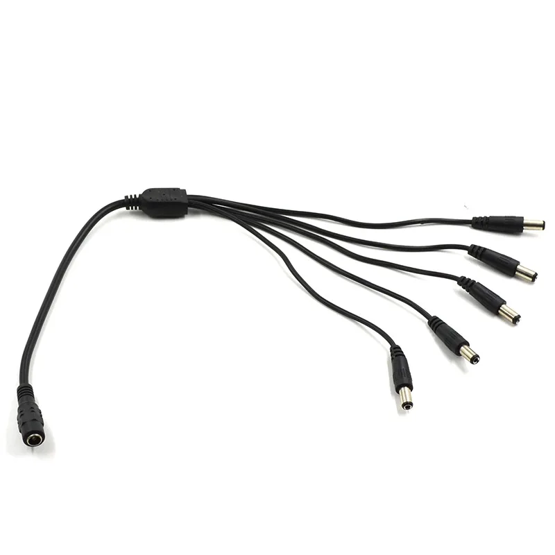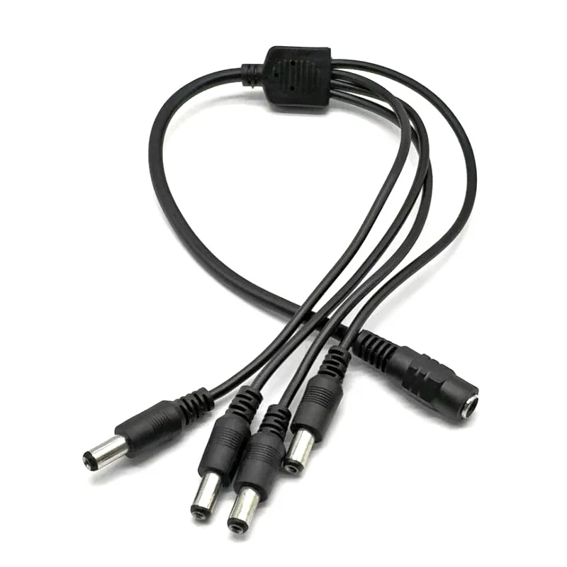Imagine having the perfect solution for distributing 12V power efficiently across multiple devices at home or in monitoring setups. This durable, flexible black cable features a main male connector that seamlessly attaches to your power source, branching into multiple female connectors tailored to your needs. Available in configurations from 2 to 8 outputs, it simplifies power management by reducing clutter and ensuring a secure connection for each device. Its sleek, cylindrical design with a matte finish guarantees durability and a clean look. Whether you're powering monitors, security cameras, or other electronic appliances, this cable offers reliability and versatility you can trust daily.