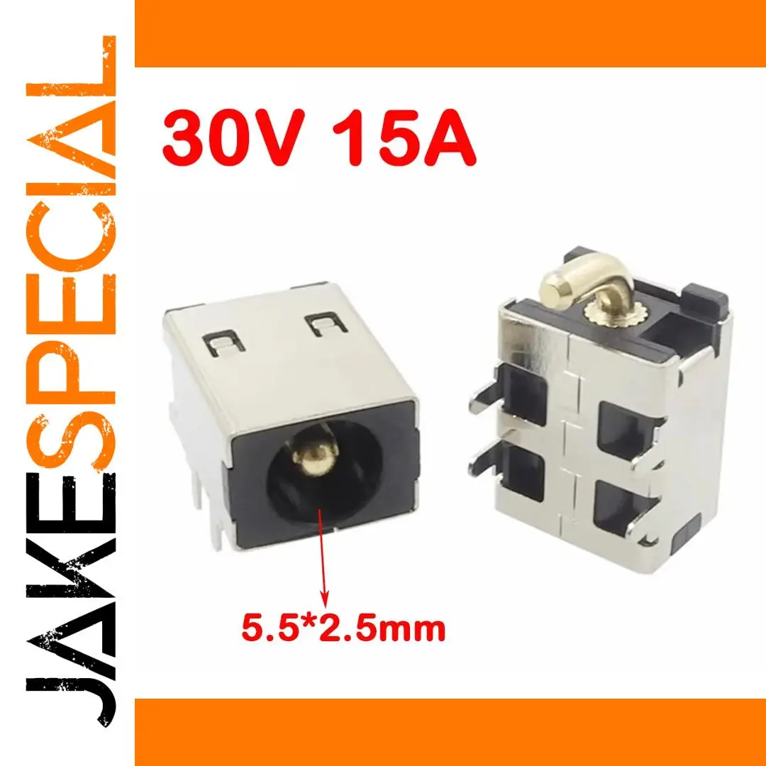 Experience reliable power connections with this this high-quality DC-5525 female power socket. Designed for high-current applications, it features a sleek, compact rectangular shape with polished metallic housing, combined with durable matte black plastic elements. The black plastic frame provides a sturdy mounting base with precise slots for easy PCB integration. The shiny, corrosion-resistant metal parts and gold-colored internal contact pin ensure excellent conductivity and longevity. Ideal for fast charging and high-power electronic devices, this connector supports voltages from 1V up to 30V, with current ratings up to 20A. Its refined aesthetic and robust construction make it perfect for professional electronic projects or replacements that demand quality and durability.