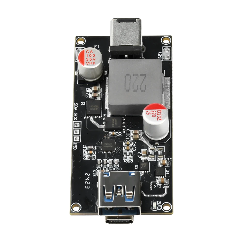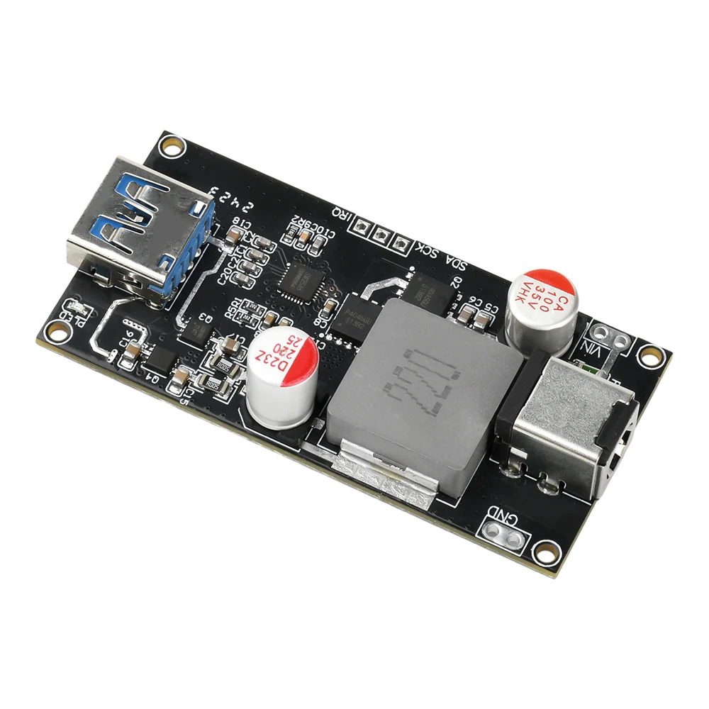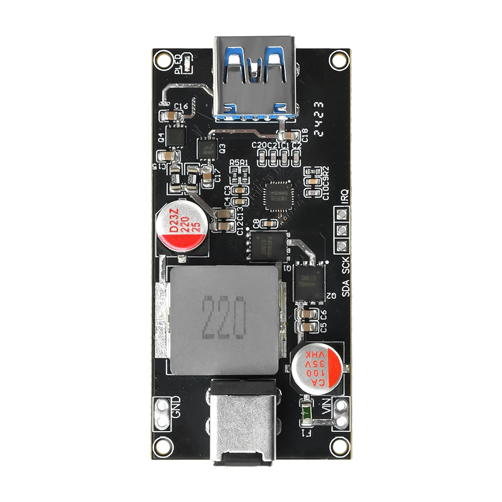 Experience reliable and efficient power delivery with this high-quality DC 6-30V 140W module. Designed to support multiple fast-charging protocols, it seamlessly meets the demands of modern devices, including smartphones, tablets, and laptops. Its sleek rectangular black PCB, complemented by a polished metallic heatsink, offers a modern, industrial aesthetic. The module features USB-A and USB-C output ports for versatile connectivity, along with a 5.5×2.1mm DC5521 input connector. Equipped with advanced protection systems, including thermistor temperature control, overvoltage, undervoltage, overcurrent, and short circuit safeguards, it ensures safe operation during intense power transfer. This compact, functional component is ideal for custom power solutions, providing a clean and dependable energy source for your projects.