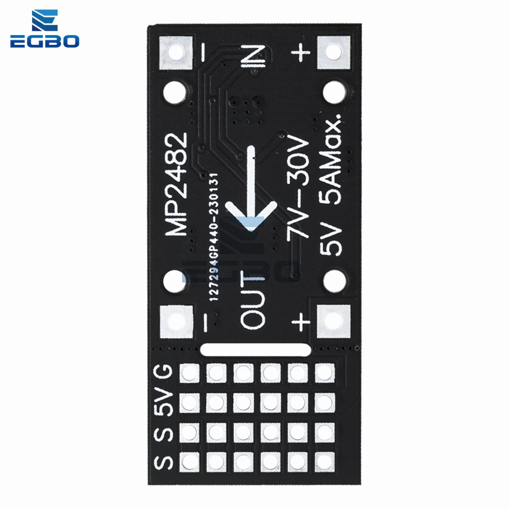 Enhance your electronic projects with this high-quality DC-DC step-down module, featuring the MP2482 SY8205 chip and a sleek black SMD design. Operating from 7V to 24V input, it reliably converts power to a stable 5V output at up to 5A, making it ideal for powering devices like Raspberry Pi and other low-voltage electronics. The module boasts a professional, organized layout with clearly marked input and output terminals, compact size, and customized options. Its robust, industrial aesthetic combines metallic-encased inductors and precise surface-mount components, offering both technical performance and a modern, utilitarian appearance—perfect for your advanced electronic setups.