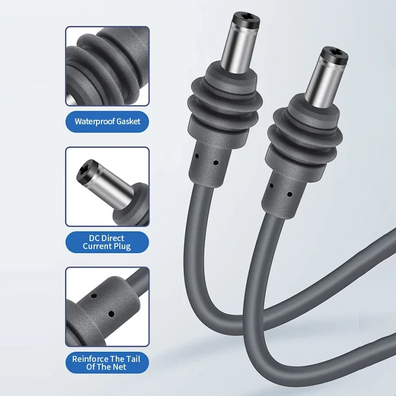 Experience reliable outdoor power with this durable DC-DC V4 Dedicated Power Cable, designed specifically for the Starlink Mini V4. Crafted with a waterproof PVC sheath, it ensures safe and efficient fast charging in outdoor environments. Available in customizable lengths of 2, 3, or 5 meters, it supports multiple voltages including 1V, 2V, 4V, 5V, and 12V, with options for customization at 220V operating voltage. The sleek, black cable features reinforced connectors with metallic cylindrical ends—one tapered with a waterproof rubber seal, the other with ventilation slots—setting a blend of rugged robustness and modern design, ideal for high-power outdoor Starlink setups.