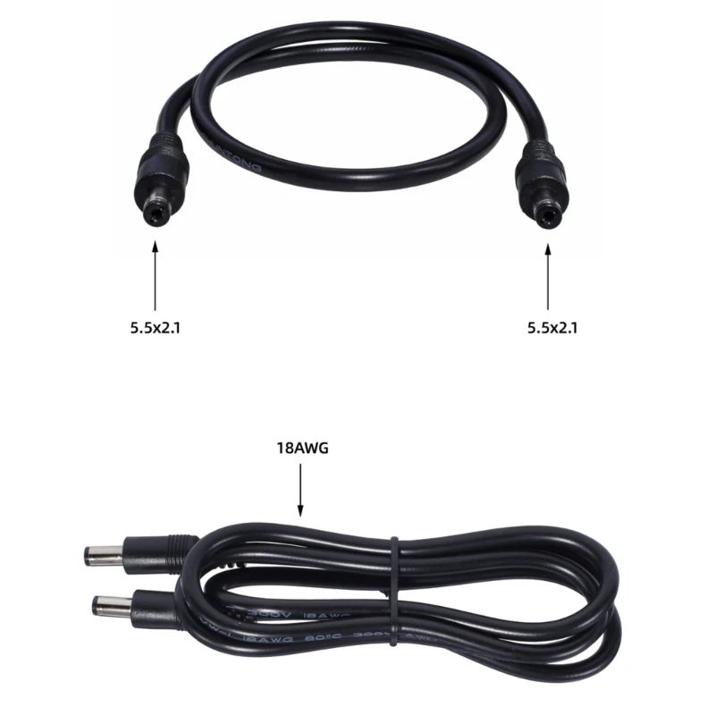 - Dimensions: The cable features a 5.5mm outer and 2.1mm inner diameter for secure connections.
