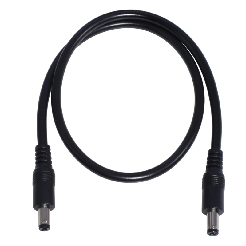 This DC5521 male to male power extension cable is your perfect solution for powering CCTV surveillance cameras and a variety of smart devices. The cable boasts a predominantly black design with a smooth, glossy plastic finish complemented by uniform thickness. It measures 50cm in length, characterized by its flexibility and durable construction. With ridged male connectors that measure 5.5mm outer diameter and 2.1mm inner diameter, it provides secure fits. The quality 18AWG wire supports up to 120W and 10 Amps, ensuring reliable power transfer. Featuring printed specifications subtly placed on the cable's surface, it's both functional and aesthetically pleasing.