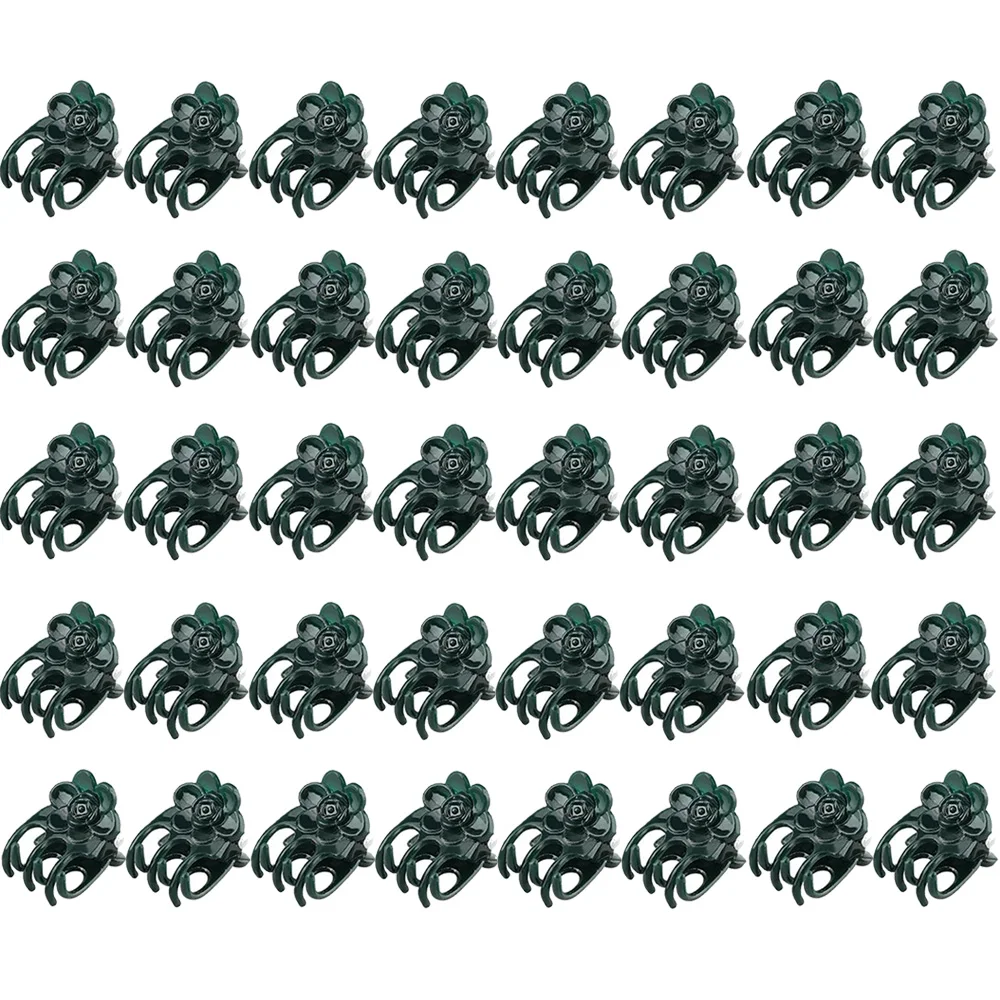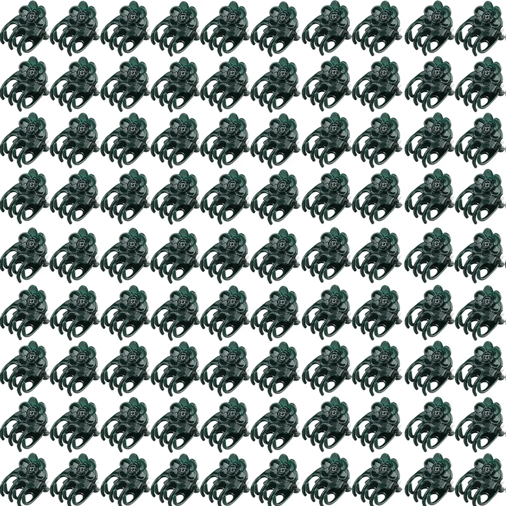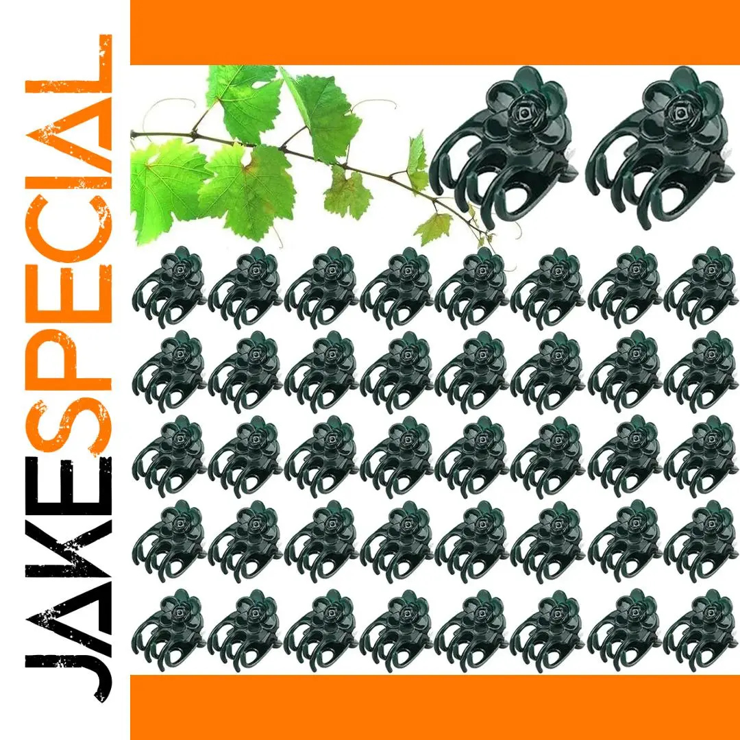 Enhance your gardening experience with these durable black plastic plant clips designed for supporting vines, orchids, flowers, fruits, and vegetables. Featuring a stylish floral motif resembling a blooming rose, these uniform clips combine functionality and aesthetic appeal. Available in sets of 50 or 100, each clip measures with a slight manual variation of 0-2cm, and is crafted from sturdy plastic with a glossy finish. The adjustable design securely holds stems, vines, and grafts, making them ideal as plant support stakes and garden accessories. These versatile clips are perfect for creating a neat, organized garden while adding a charming decorative touch.